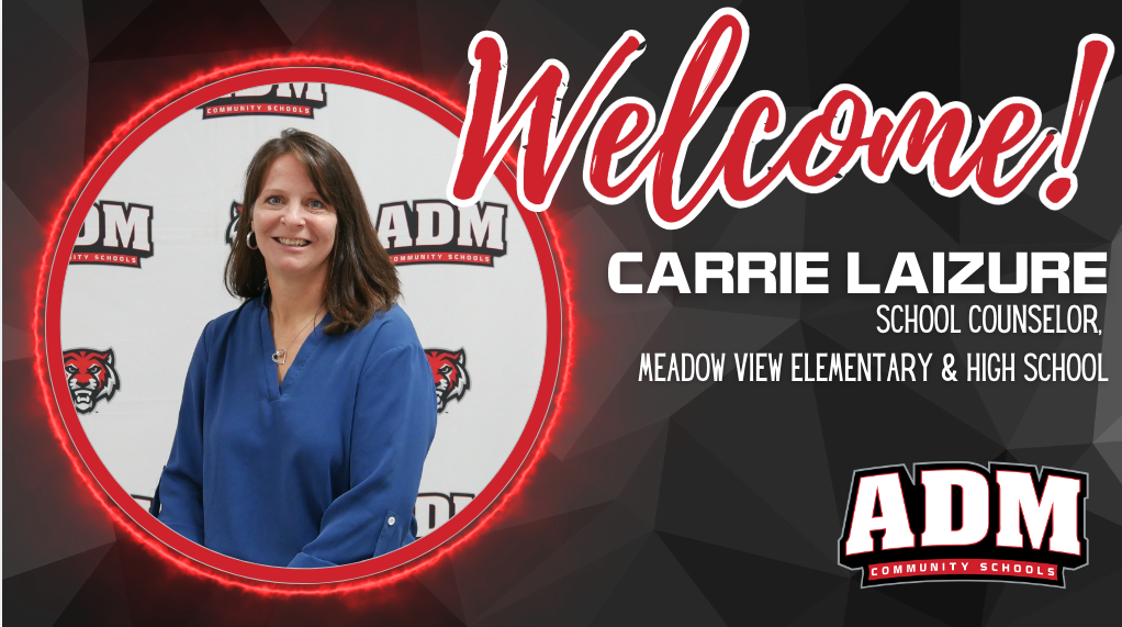 Carrie Laizure joins ADM as a School Counselor at Meadow View Elementary and ADM High School this year. She graduated from Drake University and is starting her 20th year of teaching.