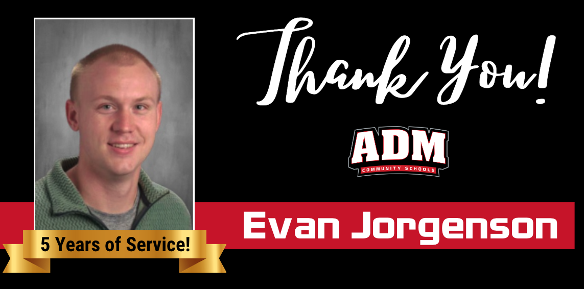 Evan Jorgenson is an 8th and 9th grade science teacher at ADM Middle School and ADM High School. He is celebrating 5 years of service at ADM this year. Evan grew up in Des Moines, IA and went to college at University of Iowa and Drake University. He was a coach prior to teaching. When Evan was asked why he wanted to become a teacher, he stated, “As a coach many years ago, my players told me I was the reason for their growth and success. I wanted to continue that with a career in the classroom.” Being able to work with many different people with their own unique, amazing qualities is what he loves most about being a teacher. He also loves seeing the growth of the students he teaches from the beginning of 8th grade to the end of 9th grade.