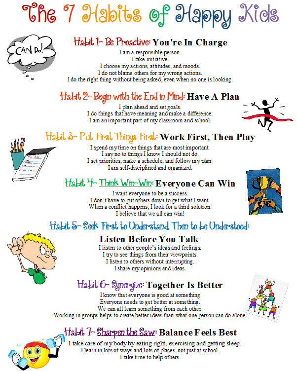 Parents, I encourage you to check out the Leader in Me website for additional information on Sean Covey's "The 7 Habits of Happy Kids", including some online games to support your children in practicing The 7 Habits at home, at school, and in our community!
