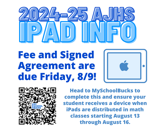 Parents and students can visit MySchoolBucks (MSB) to pay the required $50 ACS technology fee for the use of the iPad and to electronically sign the Technology Agreement form. The fee should be paid by Friday, August 9, 2024, in order for your student to receive their iPad during the distribution dates listed below.