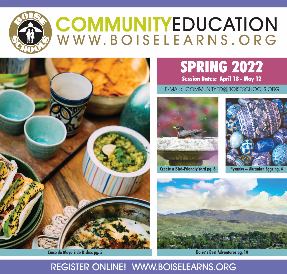 Boise, ID -- 03/27/2022 - This Spring, Boise School District is excited to once again offer in-person Community Education classes at our three schools, as well as online courses. Choose from nearly 200 Community Education personal enrichment classes.