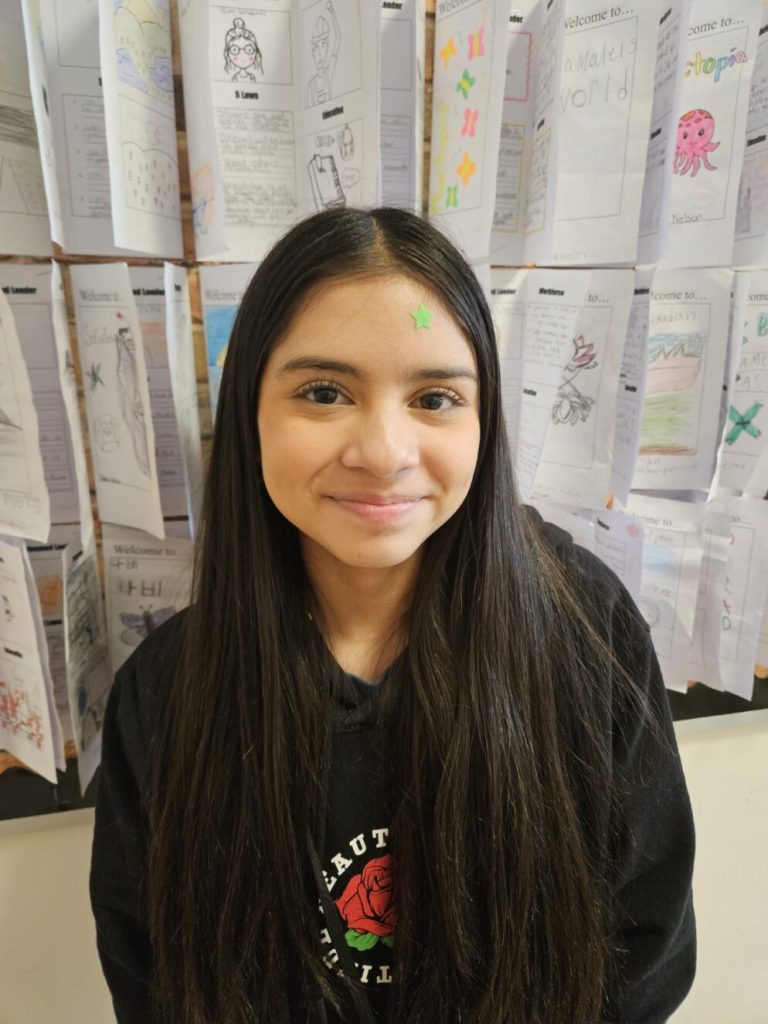 Stephanie developed a liking towards her Language Arts class this year, especially learning about writing narratives and the MLA method. While the word “incandescent” stumbled her at the very end, she was extremely proud to make it as far as she did!