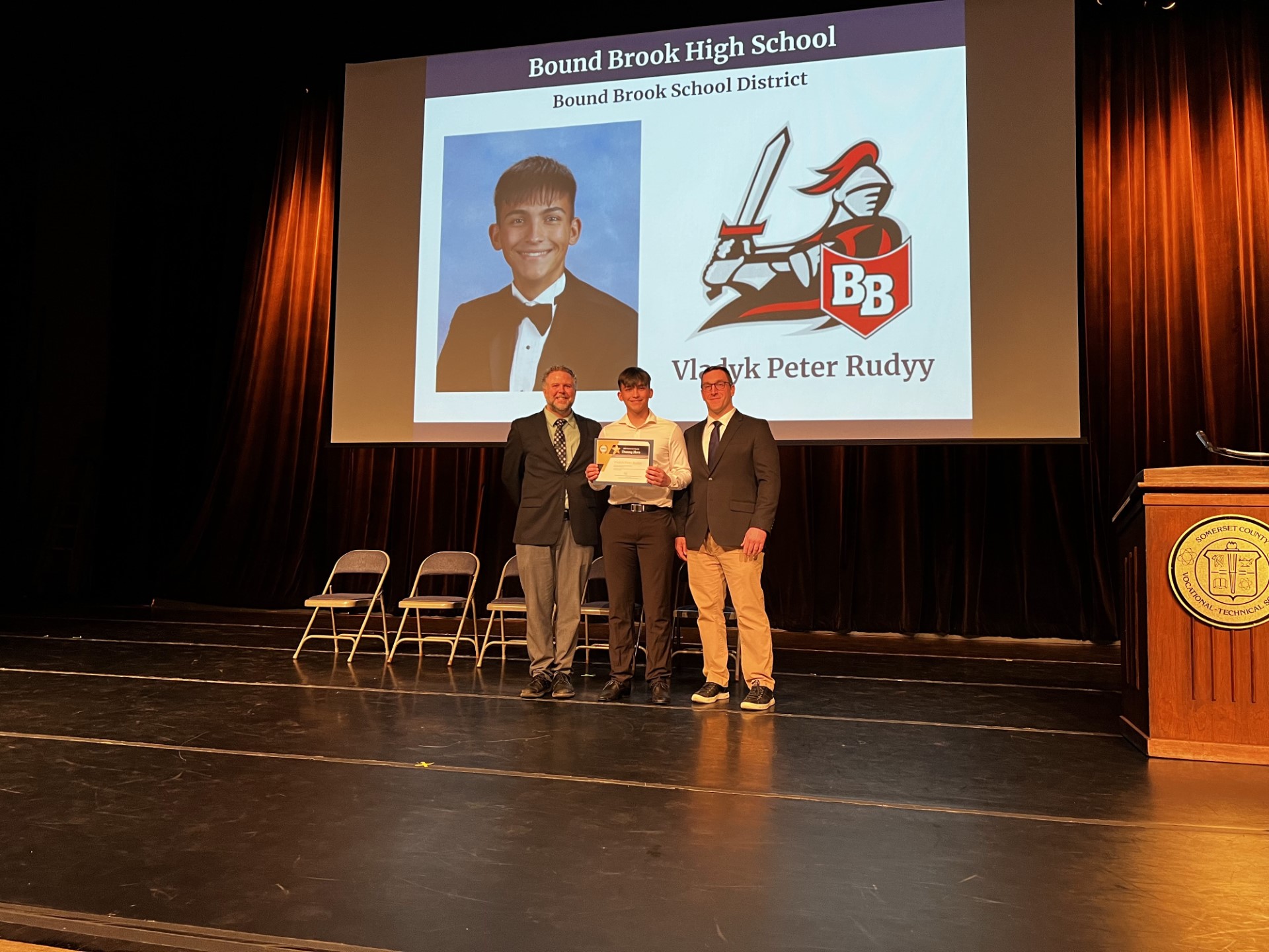 Vladyk Peter Rudyy, a senior at Bound Brook High School, was recently honored by the Somerset County School Boards Association with the 2024 Unsung Hero Award. The award acknowledges Vladyk’s positive impact in the school community and beyond.