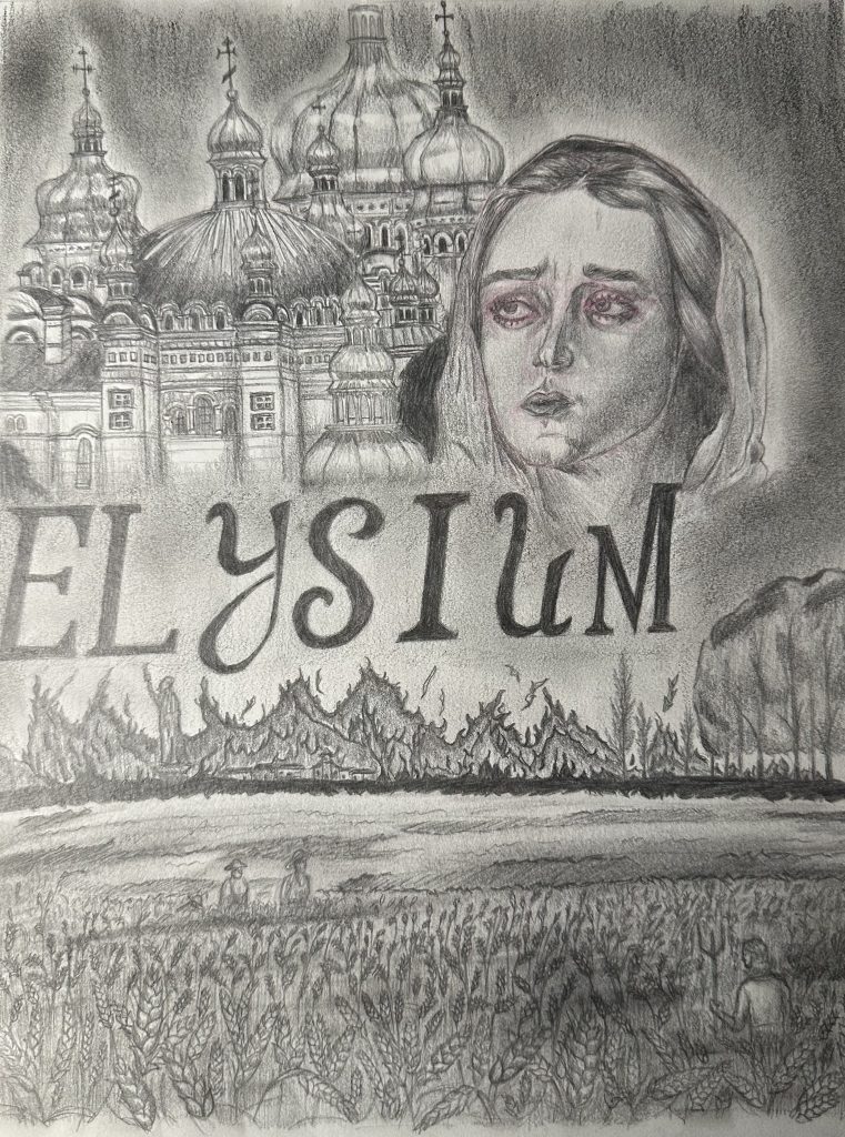 Senior Denys Lelyanov created his artwork as a cover for the Elysium Magazine, the school magazine at Bound Brook High School. Using a graphite pencil, Denys centered his art piece around the theme of human experience to illustrate it with a black and white medium.
