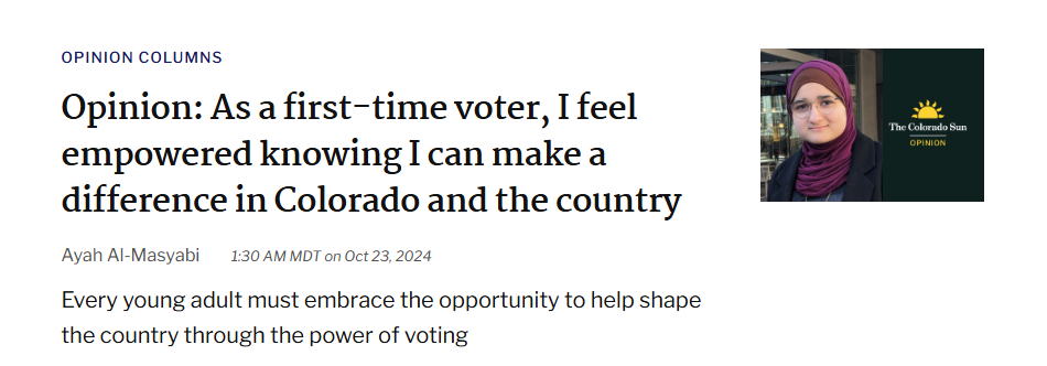 Congratulations to Ayah A for being featured in The Colorado Sun!