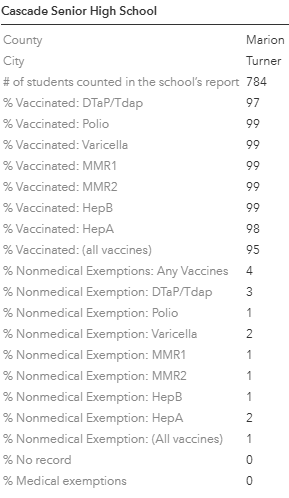 Cascade High School Immunization Data for 2023-24