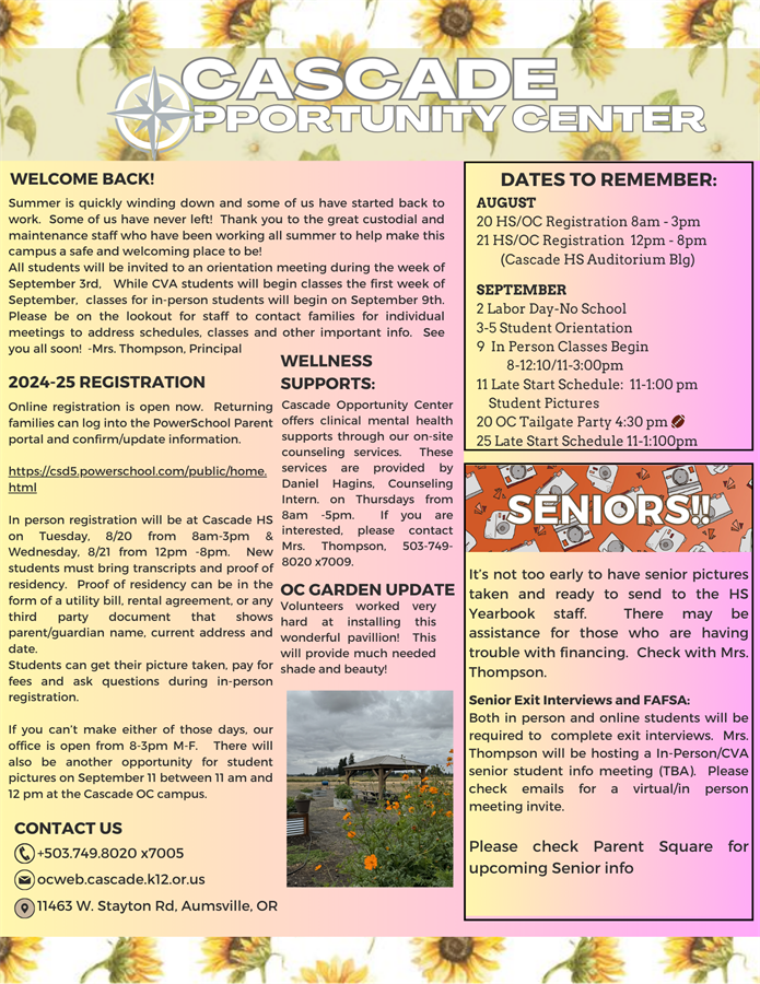 to the September 2024 Cascade Opportunity Center Newsletter!