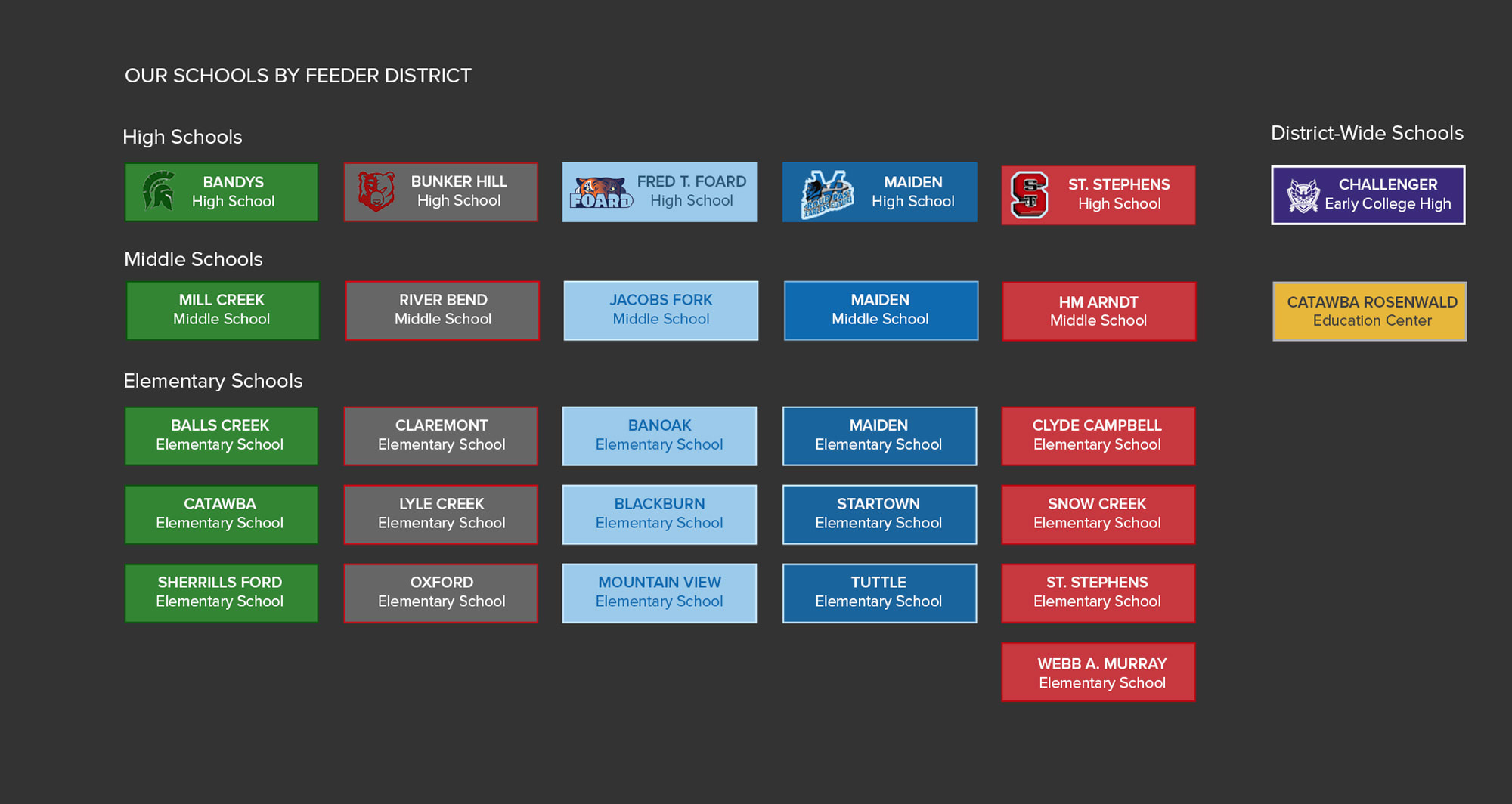 Each feeder area is organized top-down, according to the high school the students will ultimately attend. If you are unsure of which feeder area your school falls under, you can view our feeder area chart here.