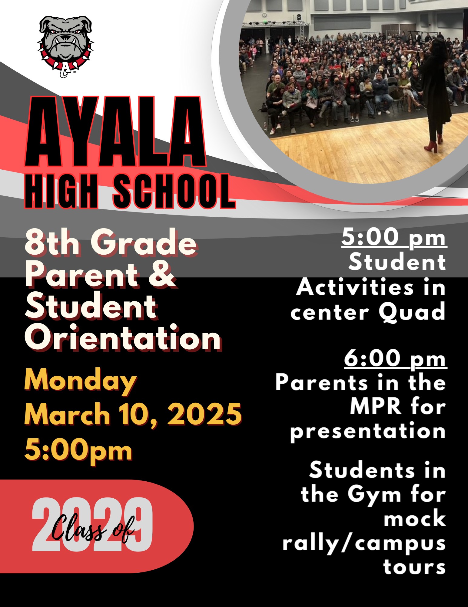8th grade orientation begins on Monday, March 10, 2025 at 5:00 pm. See the flyer for more details.