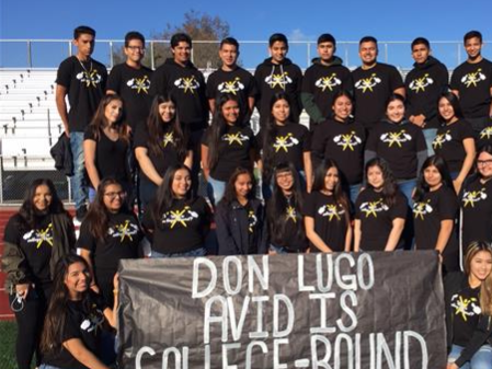 AVID is a nationally recognized program in over 5,000 schools in 44 states throughout the country. AVID, which stands for Advancement Via Individual Determination, is an elective class that meets A-G UC Requirements and prepares students who have academic potential, but who need guidance to navigate the often-confusing college application process. Our Don Lugo AVID program grows every year and currently represents 10% of the school and is made up of students who are:
