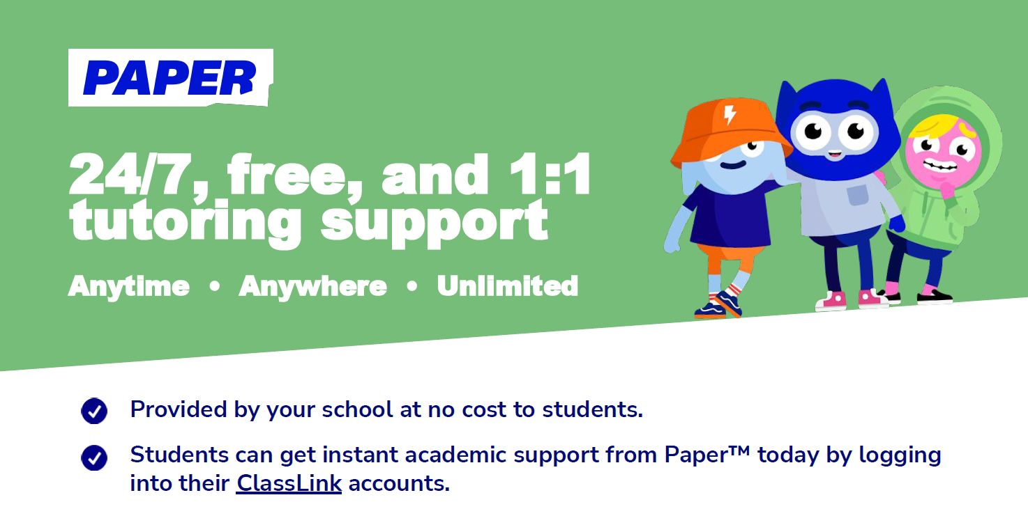 • Steps for Parents to support your student with using PAPER's 24/7 live tutoring support: