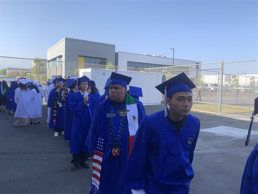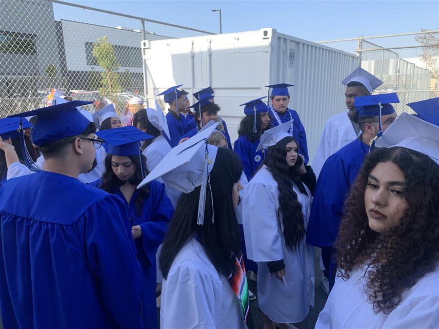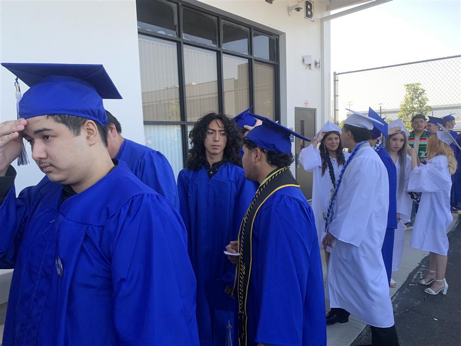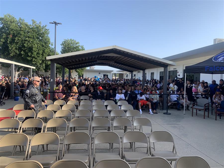 La graduación será aquí en el patio de la escuela Buena Vista High a las 6:00 PM. Todos los invitados son bienvenidos. Las puertas se abren a las 5:00 PM por orden de llega.