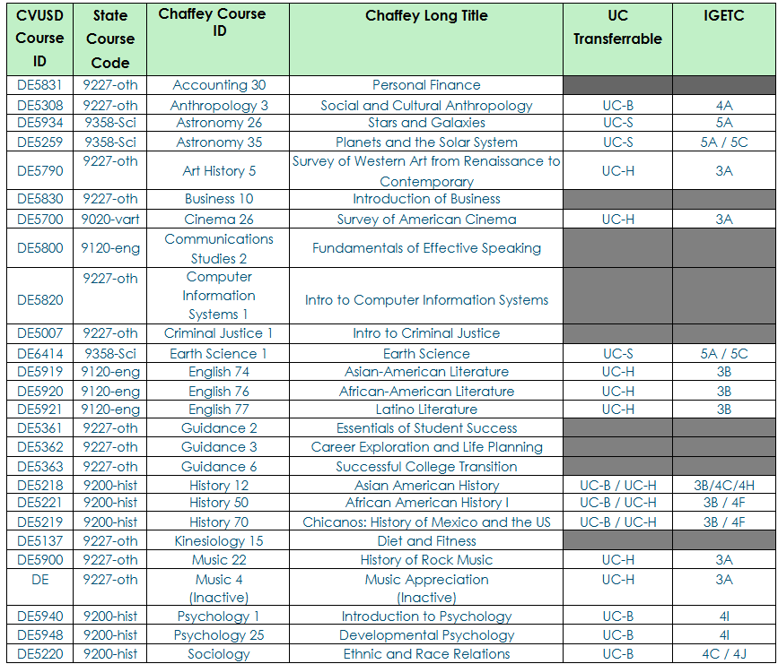 • The Chaffey College courses listed below qualify for Dual Credit in CVUSD.