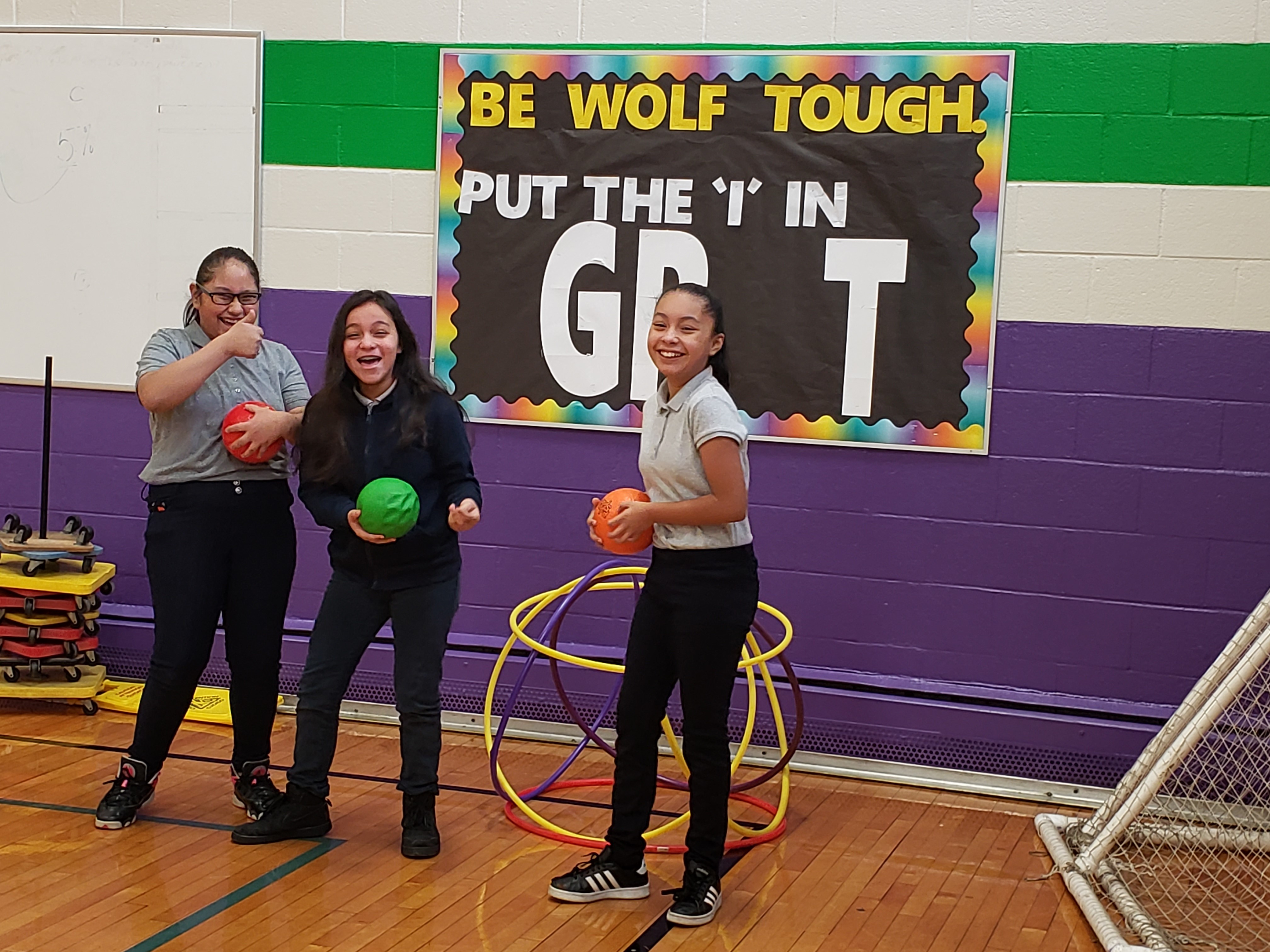 Students in Mr. Evashenk's physical-education class enjoyed themselves while playing "Protect the Castle." This is an all-time favorite game where students have to work together to build castles with hula hoops and then attempt to knock down the other team's castles by throwing cannonballs.