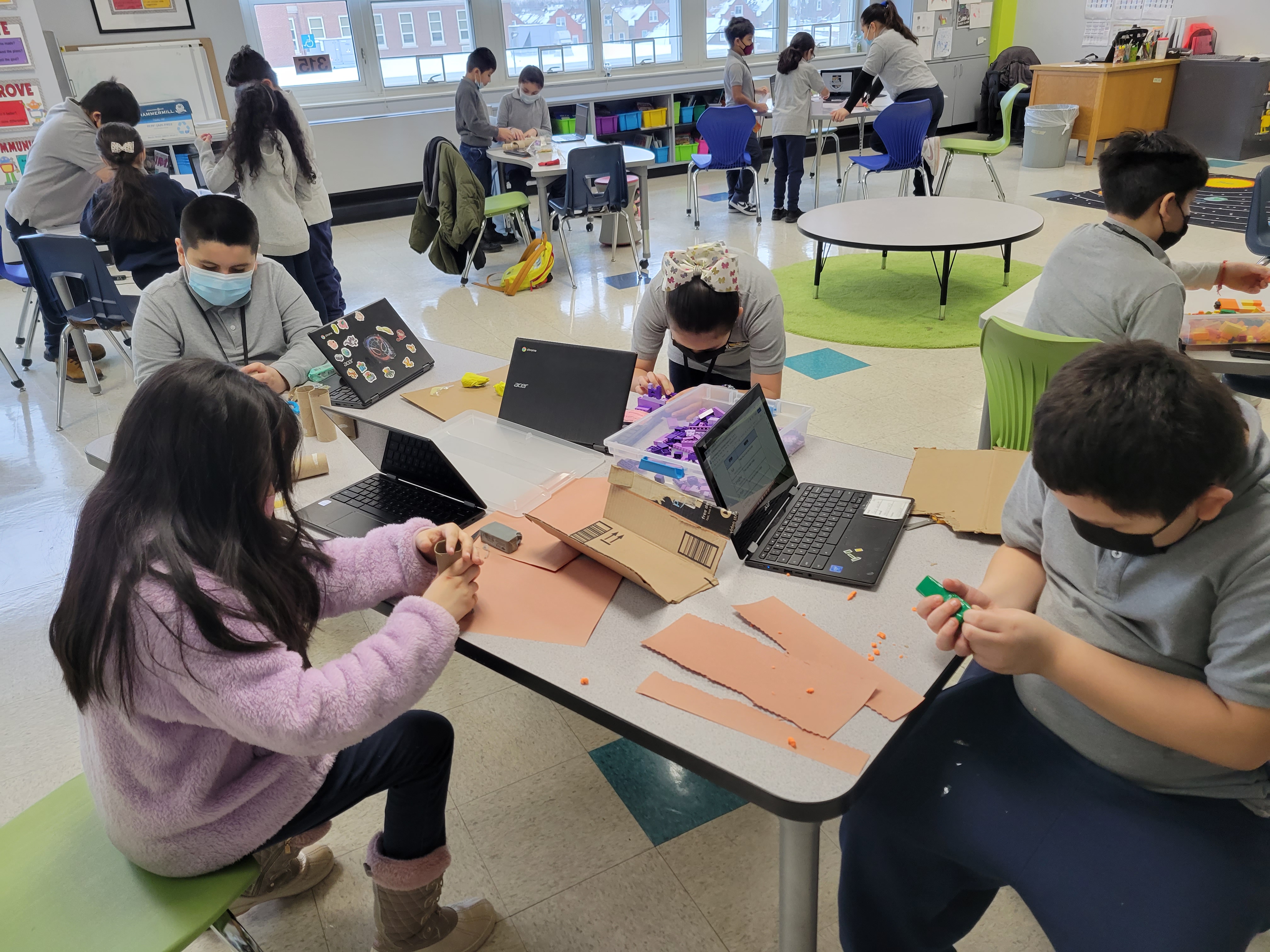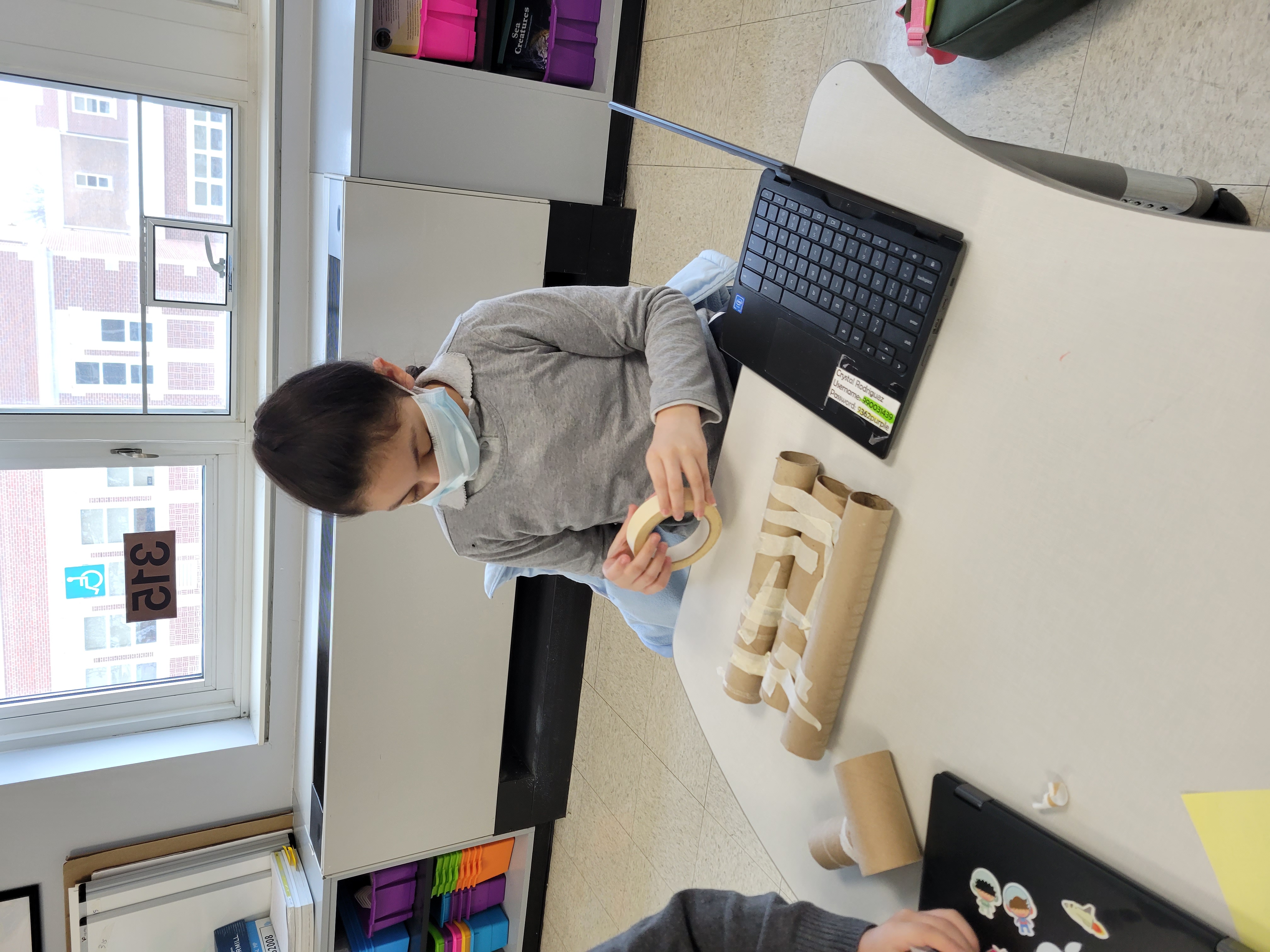 STEAM students from room 310 practiced being civil engineers by building bridges to get a cotton ball over a river. Students got to choose the material they wanted to create with and will work on improving their project.