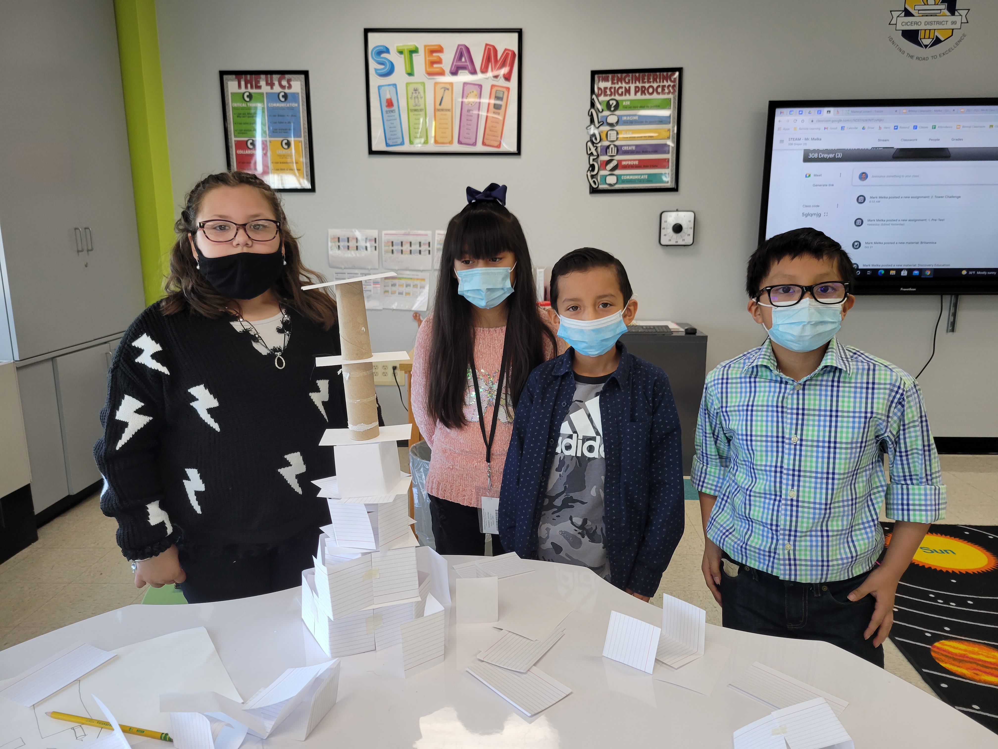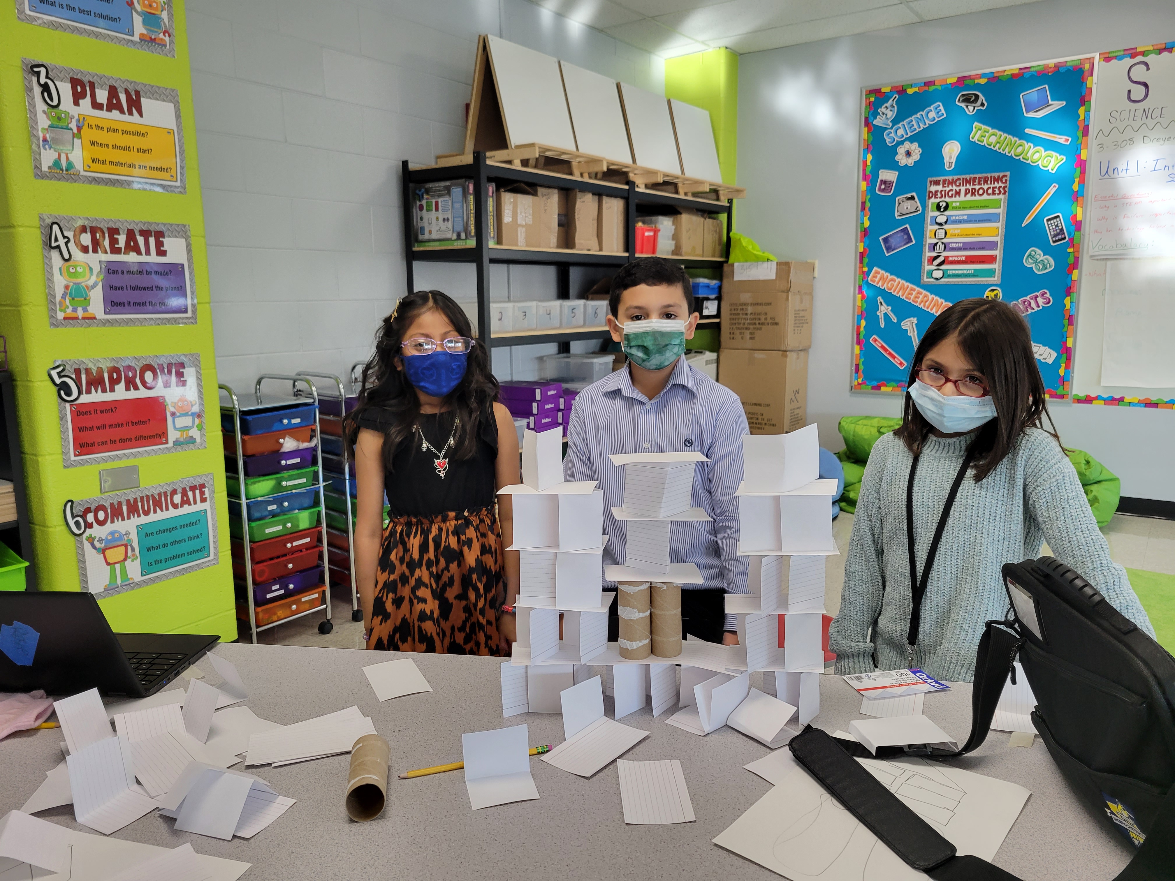 Third grade students in Mr. Melka and Ms. Dreyer's class learned about the Engineering Design Process during the Tower Building Challenge in STEAM Class. Students were presented with a problem and had to plan, create, and improve their tower before getting feedback from other teams.