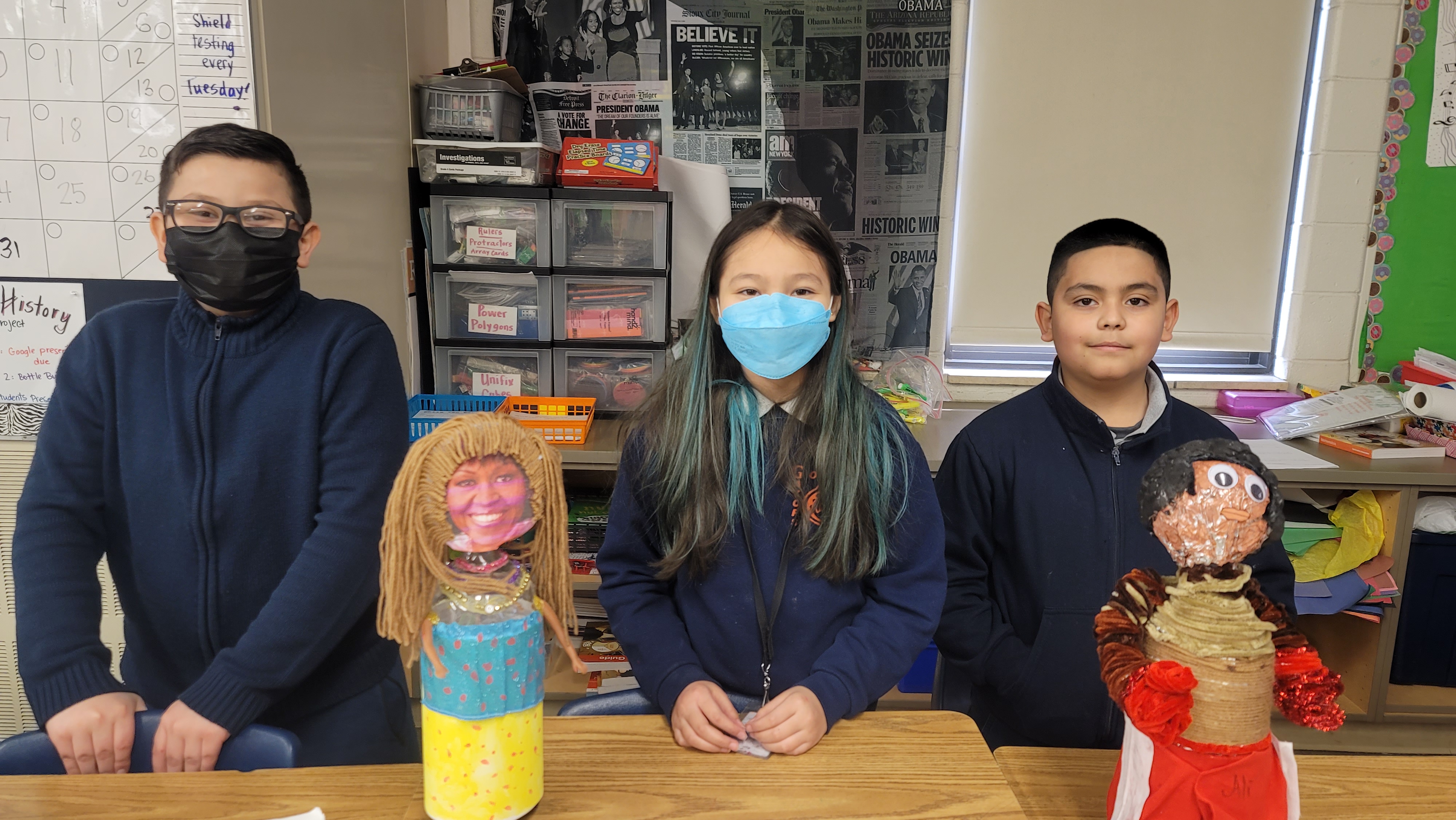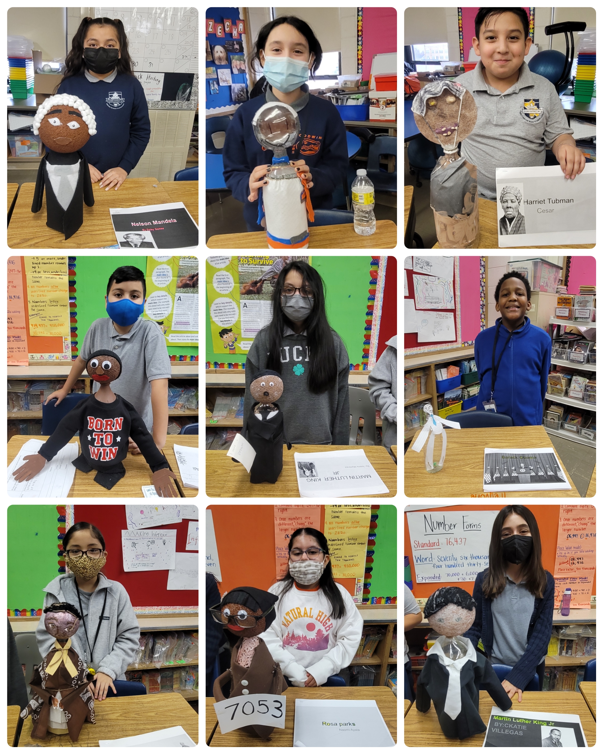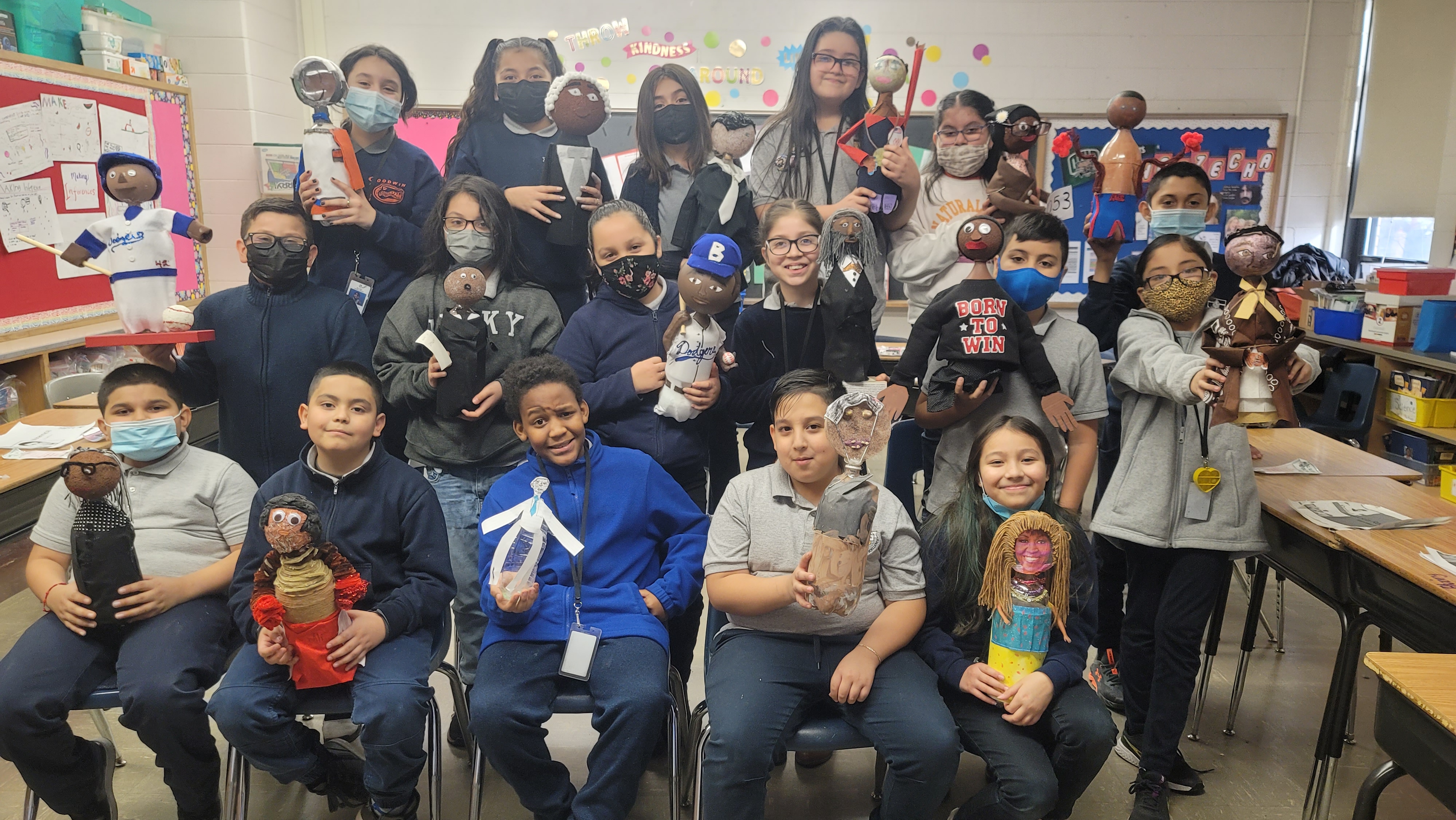 Fourth grade students spent time researching an important figure from both the past and present. Students learned how to properly cite a book source in media and put their research to a Google slide presentation. For icing on the cake, Students created a 'buddy' using a two liter soda bottle as the body and let their creative minds do the rest! Their goal was to create a 3d figure using materials around the house and replicate clothing their person would wear. Team 307 invited classrooms at Goodwin to learn about these important figures via a gallery walk!