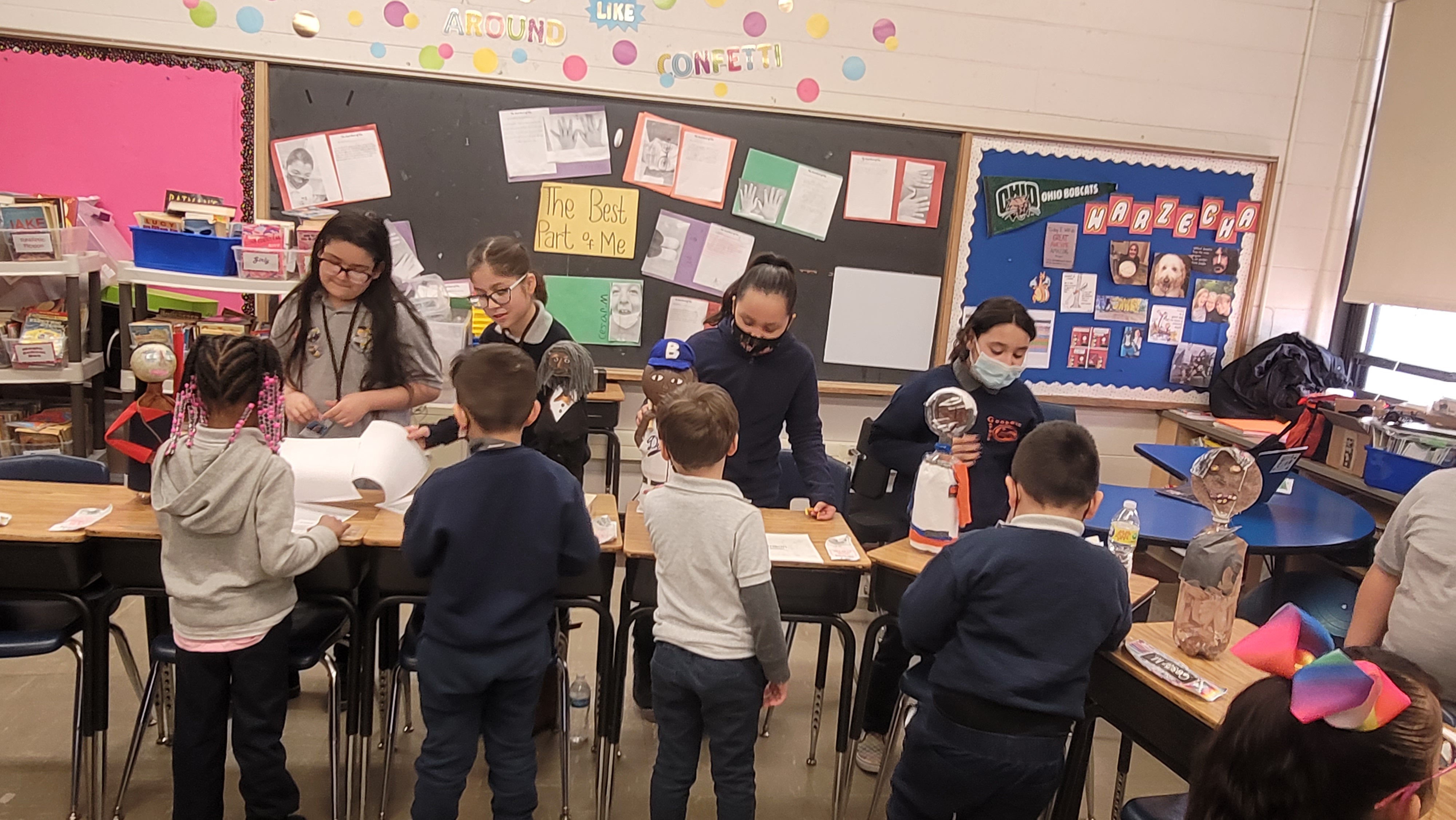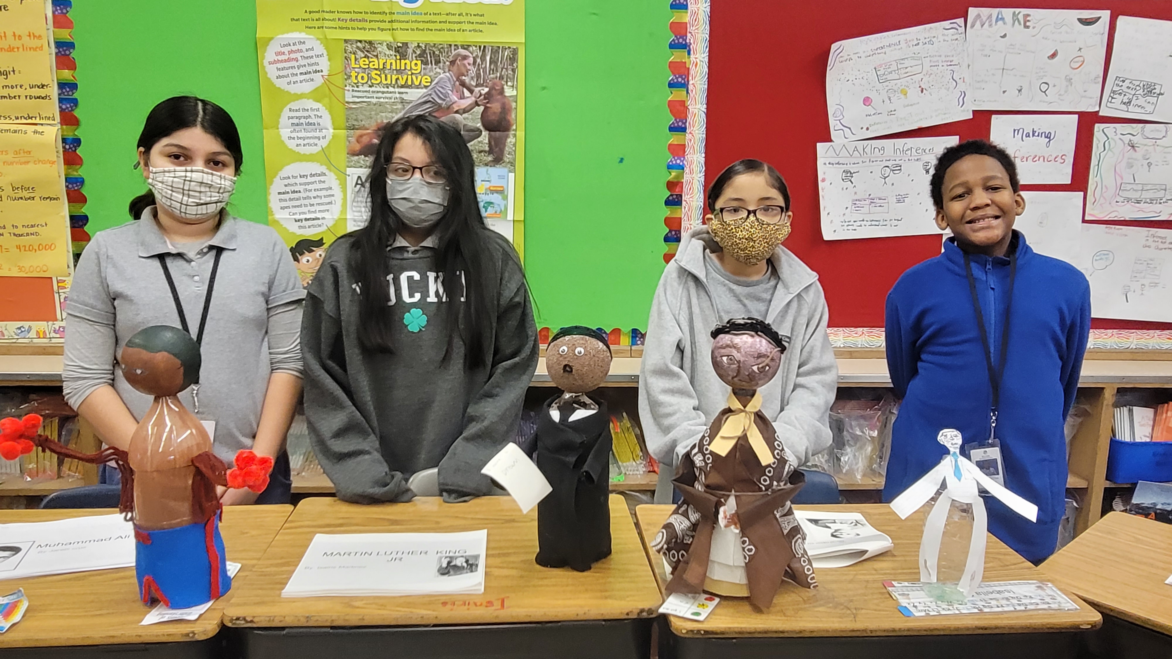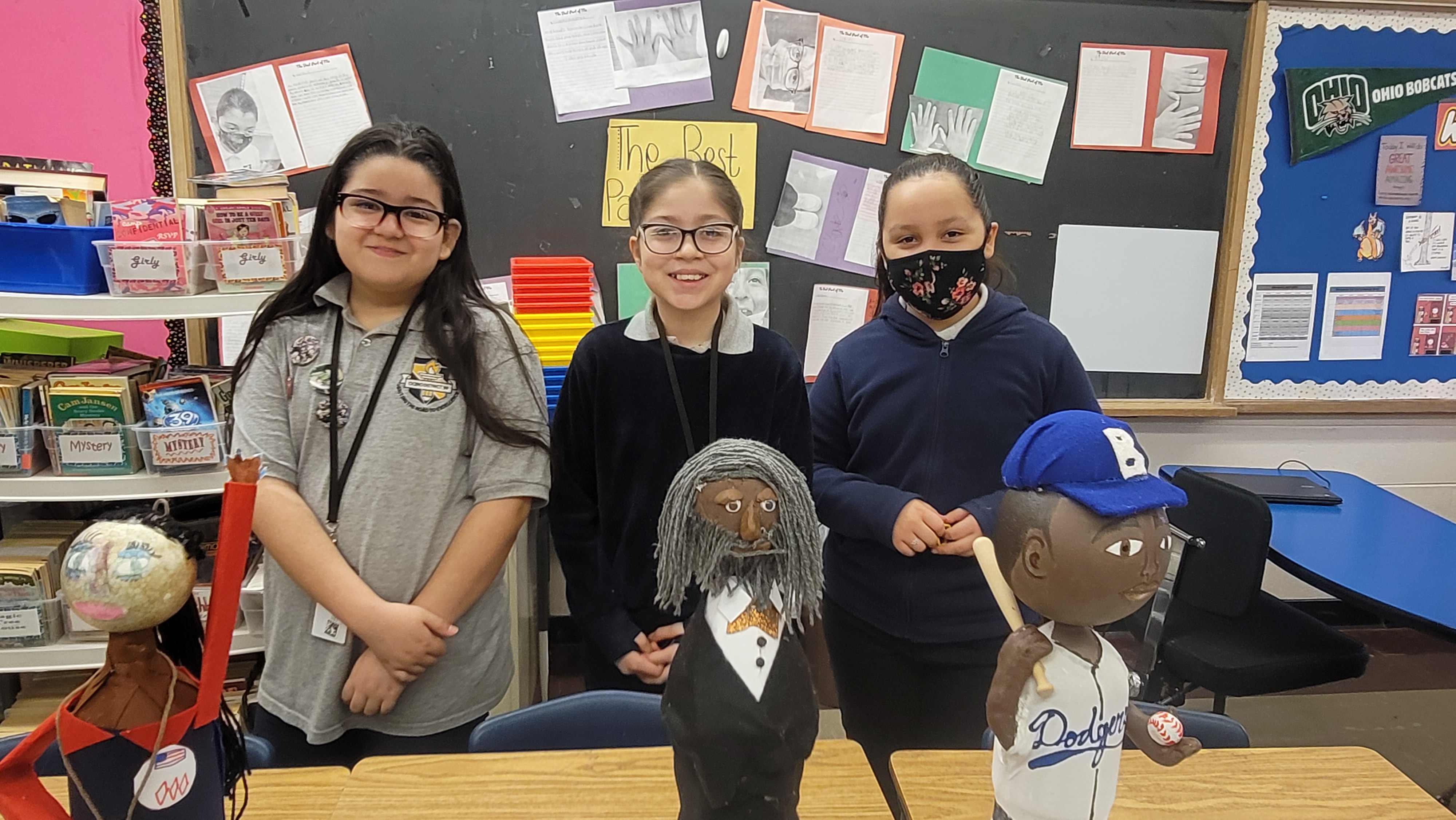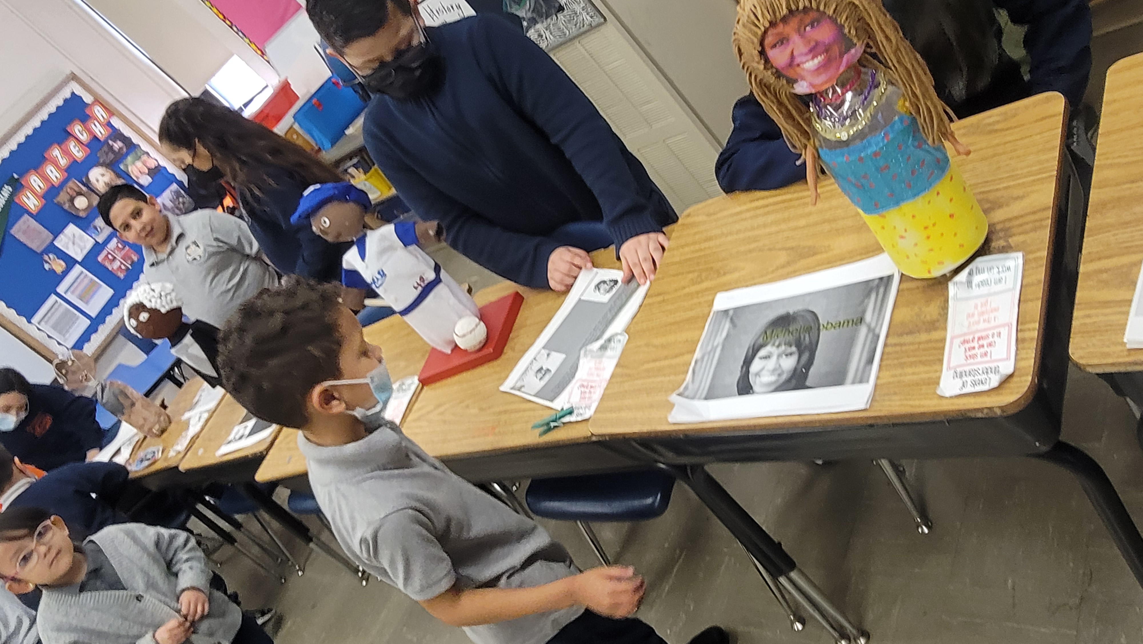 Fourth grade students spent time researching an important figure from both the past and present. Students learned how to properly cite a book source in media and put their research to a Google slide presentation. For icing on the cake, Students created a 'buddy' using a two liter soda bottle as the body and let their creative minds do the rest! Their goal was to create a 3d figure using materials around the house and replicate clothing their person would wear. Team 307 invited classrooms at Goodwin to learn about these important figures via a gallery walk!