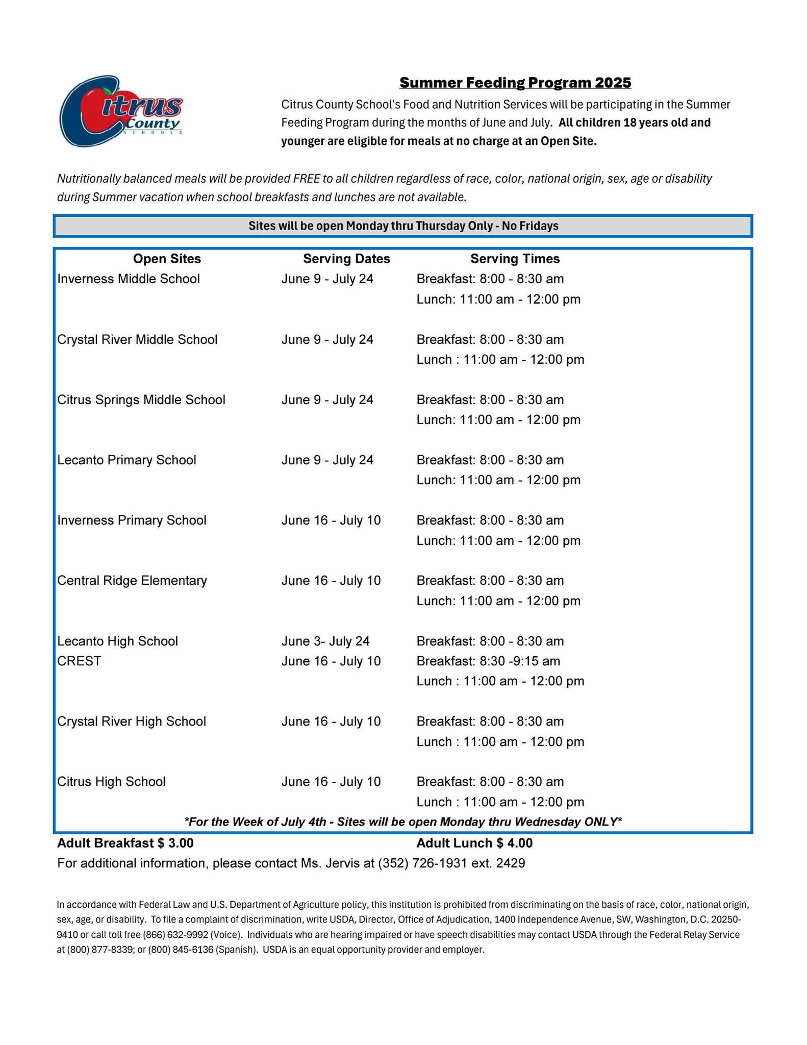 Wednesday Breakfast: Blueberry or Chocolate Muffin (choose one), Mandarin Orange Cup, Fruit Juice and Milk