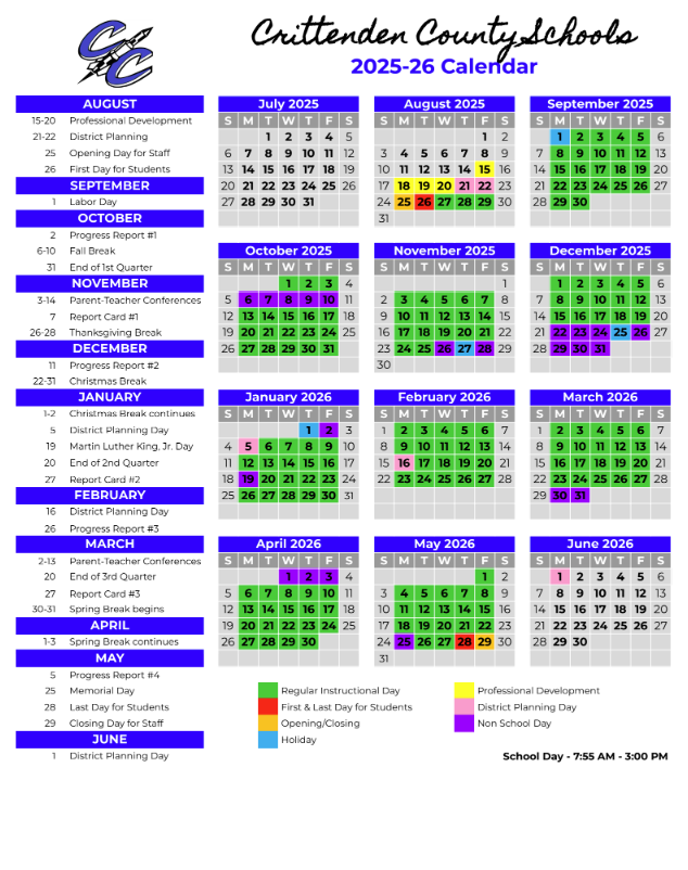 Students, their families, employees and potential employees of Crittenden County Schools are hereby notified that the district does not discriminate on the basis of race, color, national origin, age, religion, marital status, sex or disability in employment, vocational programs offerings, admissions criteria, or activities as set forth in compliance with federal and state statutes and regulations.