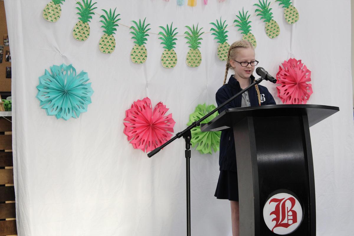 Belmont’s top fourth, fifth and sixth grade writers from each classroom, competed in the Belmont Tropicana Speech completion Monday, with first place winners going onto the county competition.