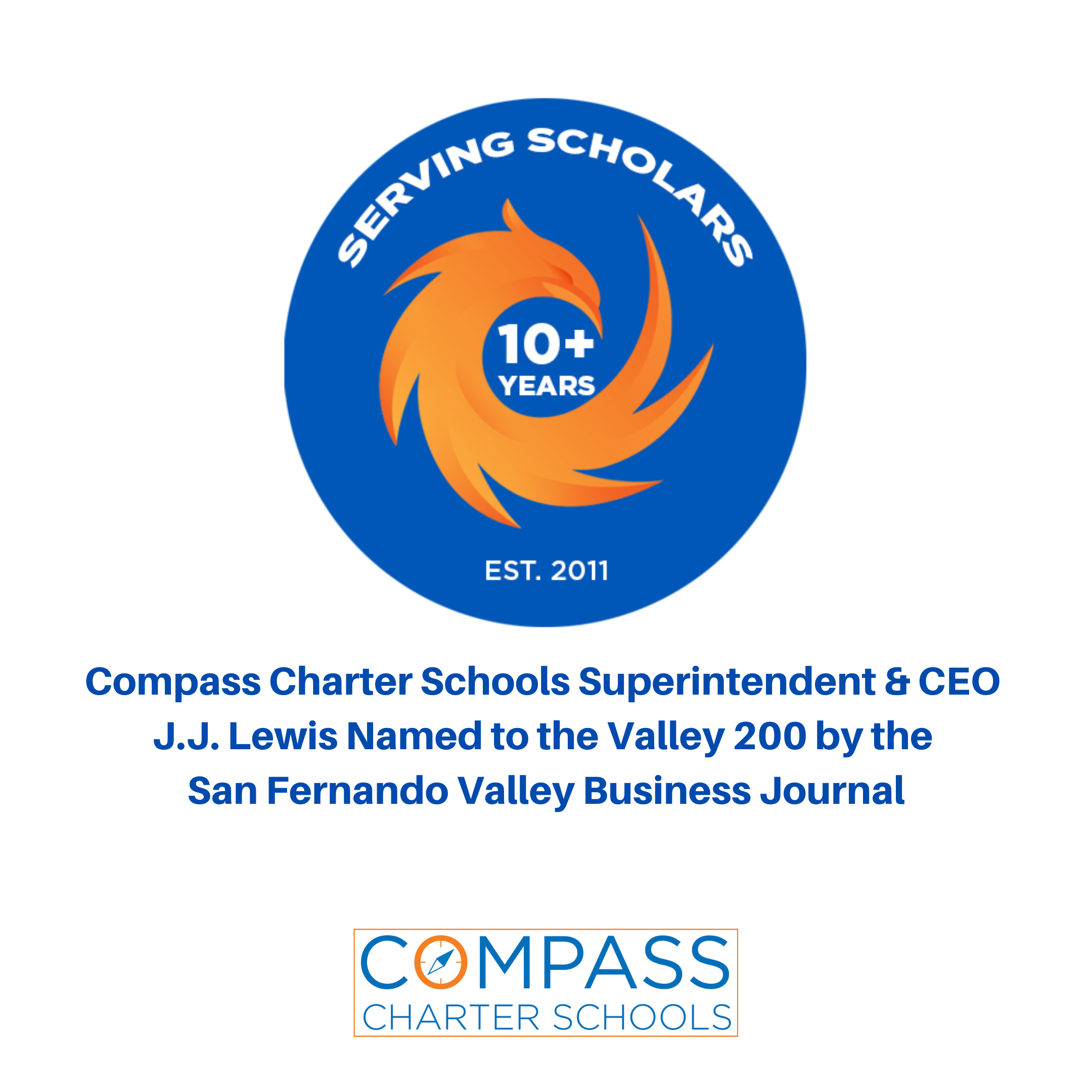 FOR IMMEDIATE RELEASE: August 15, 2022 CONTACT: Kimberly Aguilar, (805) 341-4689 Thousand Oaks, CA – Compass Charter Schools (Compass) is excited to announce that its Superintendent & CEO, J.J. Lewis,…
