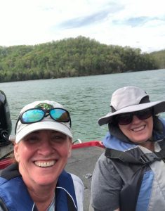 I love to read and am usually reading several books at the same time. I belong to a local book club, and we meet once a month. I also volunteer as a CASA and work with local foster youth. My current case includes two siblings. I love walking each morning watching the sunrise, and my dog and I average about 1.5 to 2 miles daily. I also like to stream new shows and watch too many reality shows. My current favorite is the Great British Baking Show. I love baseball, and I am a Padres fan. My 20-year-old son is also at home with me, and I love visiting with him each day to see what he’s up to. He loves to golf, and golfing is something I’d like to start doing again. (The pictures attached are my son and me and my best friend and me in Tennessee after a day of fishing.)