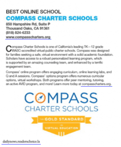 Thousand Oaks, CA – Compass Charter Schools has been voted as the BEST ONLINE SCHOOL and FAVORITE CHARTER SCHOOL by the Los Angeles Daily News Readers Choice 2021 for the fourth year in a row!
