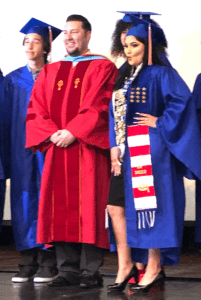 “My first and only Compass senior, Sovia Juanita R., graduated today at the Los Angeles ceremony, and I am just so proud and grateful! (Look at her SASSY self, and the “best smile you’ve got” picture next to J.J. Lewis!) Sovia is the first in her large family ever to get a high school diploma! I didn’t meet her until this year, and the pandemic was rough on her family, as it was for many who struggle when there isn’t even a pandemic happening. But counselor, Mandi Schwartzberg met with us in the fall and laid out a plan by which she could graduate if she passed every single course this year! Michelle Moyher, Supervising Teacher, and Rebecca Jacobs, Supervising Teacher, encouraged her in live synchronized classes. Christy Saez, English Language Support Coordinator, and Gina Lopez, English Language Learner Tutor, encouraged her to get the ELD and Lexia minutes done. Gracias a todas ~ importa lo que hacen, y aunque no tengan idea de los resultados de antemano, miren lo que sucede me siento TAN orgullosa y contenta hoy.” -Stephanie Lee, Supervising Teacher