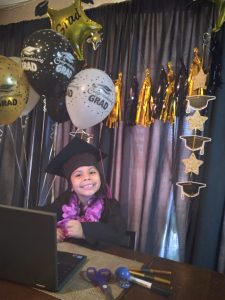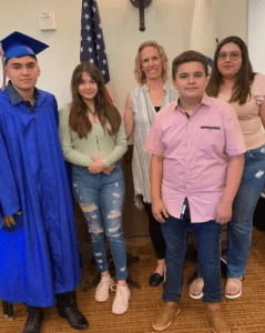 “I want to shine the spotlight on two of my sibling scholars who graduated this year, Itza and José (pictured here with their other two siblings, Alexa and Cristian.) They were both behind in credits but had the opportunity to graduate due to AB104. They worked very hard this year to make it happen! I especially want to shine on Itza. This was her third year as a senior, and she is well into adulthood. She had been working with her counselor, Ms. Kiki Helton, to come up with other options when this opportunity arose this year. She was SO excited and asked me many times during our connection meetings, ‘Are you sure I’m going to graduate?’ She carries a lot of responsibility at home, so doing school with all that was a challenge. She did it, though!” -Kristy Smith, Supervising Teacher