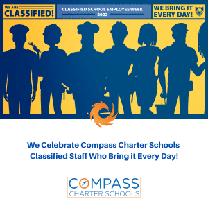 This week we celebrate Classified School Employee Week (CSEW). This year’s theme is, “We are Classified! We Bring it Every Day!” At Compass Charter Schools, we have so many incredible classified workers who genuinely are heroes behind the scenes. Each department at Compass pledges to put scholars first and upholds our ARTIC core values of Achievement, Respect, Teamwork, Integrity, and Communication. Our classified staff here at Compass are essential, united, and strong. Compass staff make it happen for our teachers, academic staff, administrators, scholars, and communities.