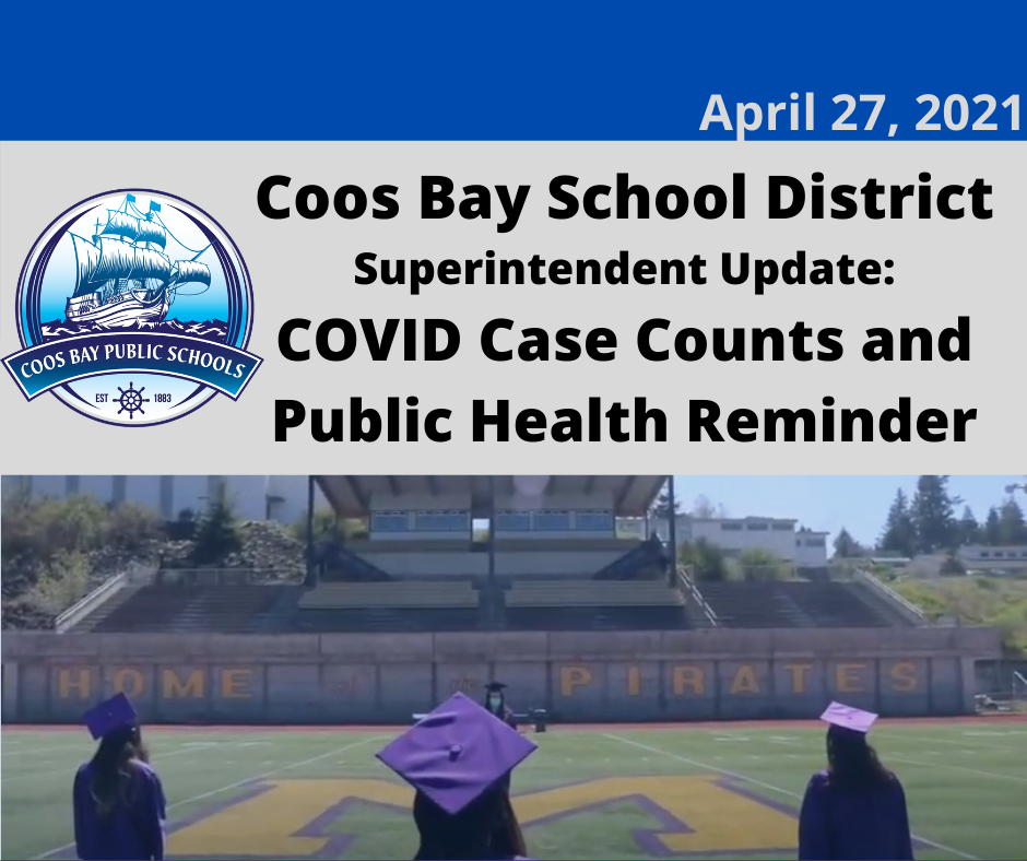 All of these exposures were traced back to community cases. I can’t over emphasize the need to keep up the hard work and effort of practicing good public health protocols. I know it is getting old and many of you are getting fed up. I’d be hard-pressed to find a person who likes to wear a mask all the time, but I want to encourage everyone to not give up and to continue to wear masks, wash hands, and socially distance when required. I also ask that everyone cooperate with Coos Health and Wellness so they can accurately do their job of contact tracing to keep our kids, staff, and each other safe. Case numbers are climbing around our state. We can’t allow that to happen here in our community. We are planning for a much-deserved in-person graduation ceremony at Pete Susick Stadium for our senior class. That can only happen if our county stays out of the extreme risk category. Please help us end this school year on a positive note.