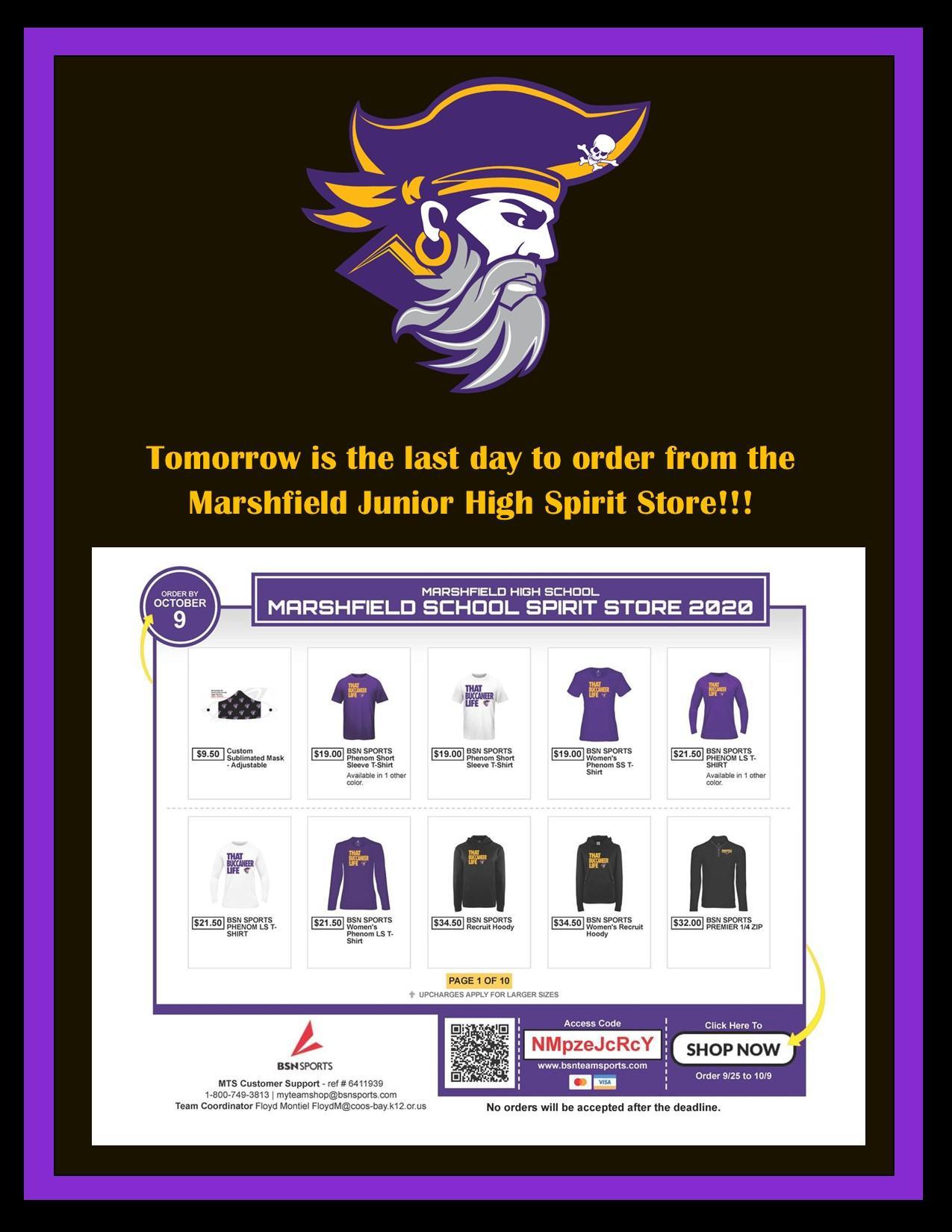 Tomorrow is the last day to order Buccaneer Merchandise! Go Buccaneers! School Merchandise available to purchase until October 9th. Website is www.bsnteamsports.com Access code: NMpzeJcRcY Make sure you to order by date above no orders will be accepted after the deadline.