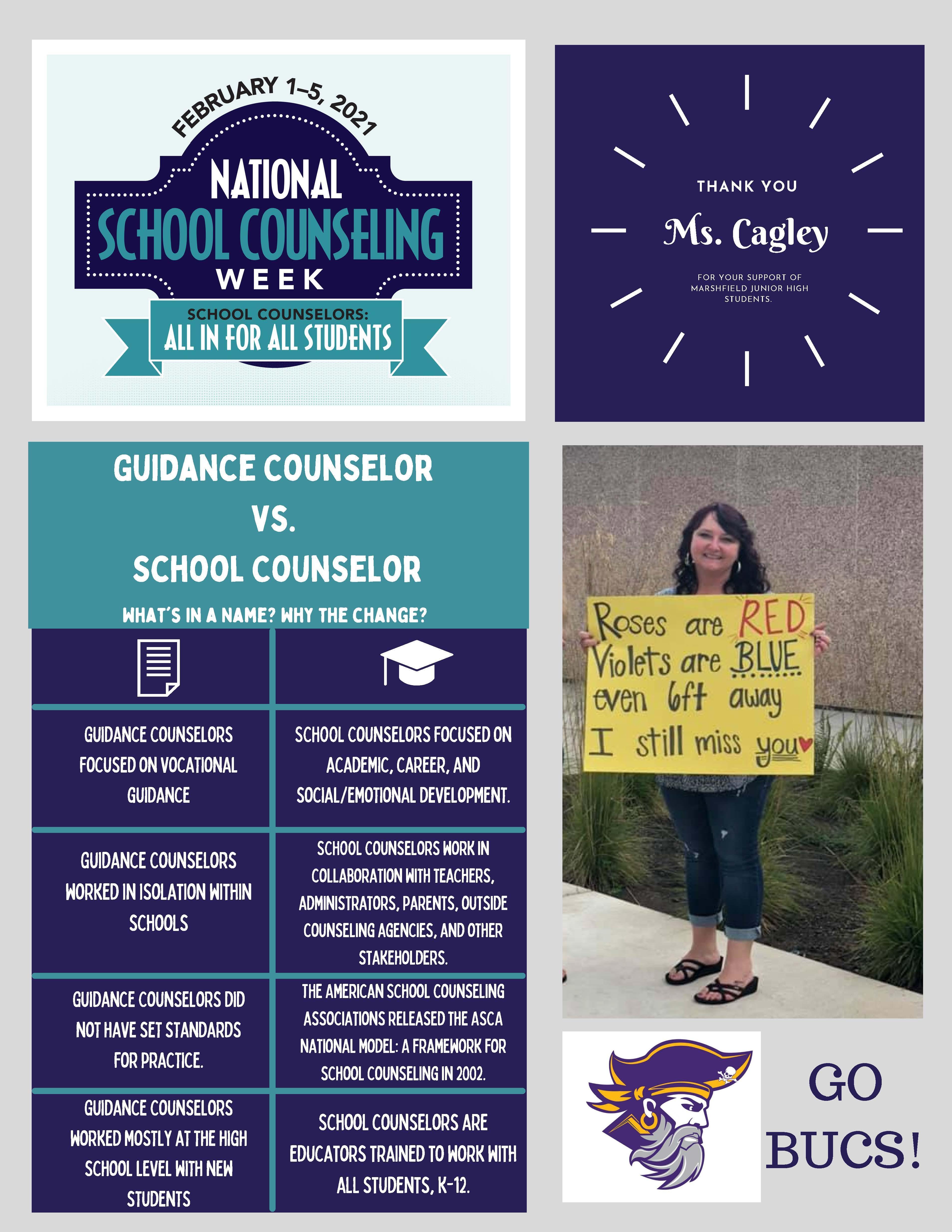 It is National School Counseling Week and we here at MJHS want to thank our school counselor, Marji Cagley.