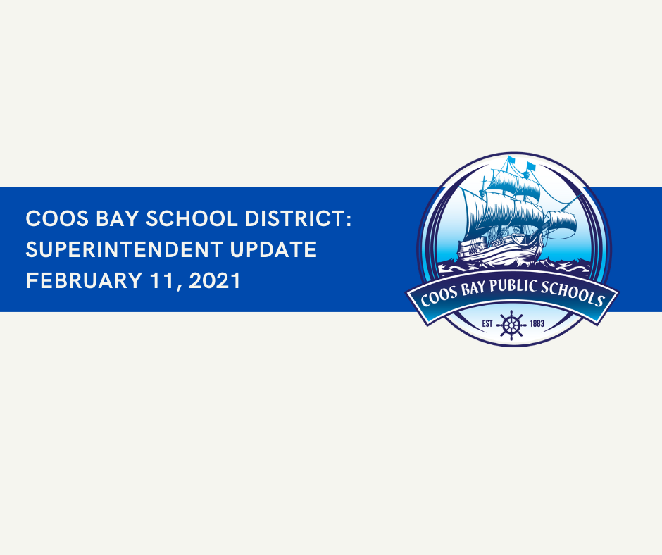 Well the weekly numbers have come in and the two week combination for Coos County (1/24-2/6/2021) has climbed to 284 cases per 100,000 residents. That is up from 248 last week and 202 just two weeks ago. The Oregon Department of Education guidelines state that if case trends are on the rise that we are to consider pausing implementation of our High School in-person instructional model. Our original target date to bring our High School kids back to in-person was Feb.16th. Due to the most recent data, we will postpone that date until at least February 22nd.