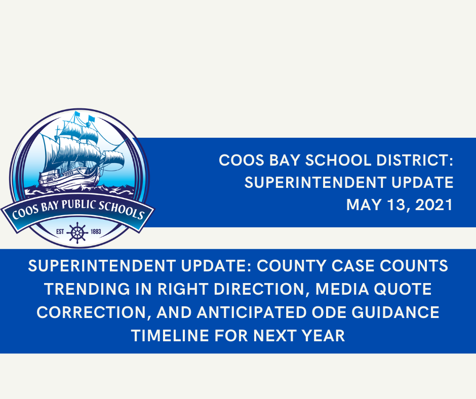 ODE is working on guidance for next school year. They will have the first draft out the first week in June. We are anxiously looking forward to what that guidance looks like so we can plan for the 2021-22 school year. I am committed to doing all we can to get our students back full-time next Fall. Let’s all commit to continuing the public health safety protocols to keep our case numbers going down.