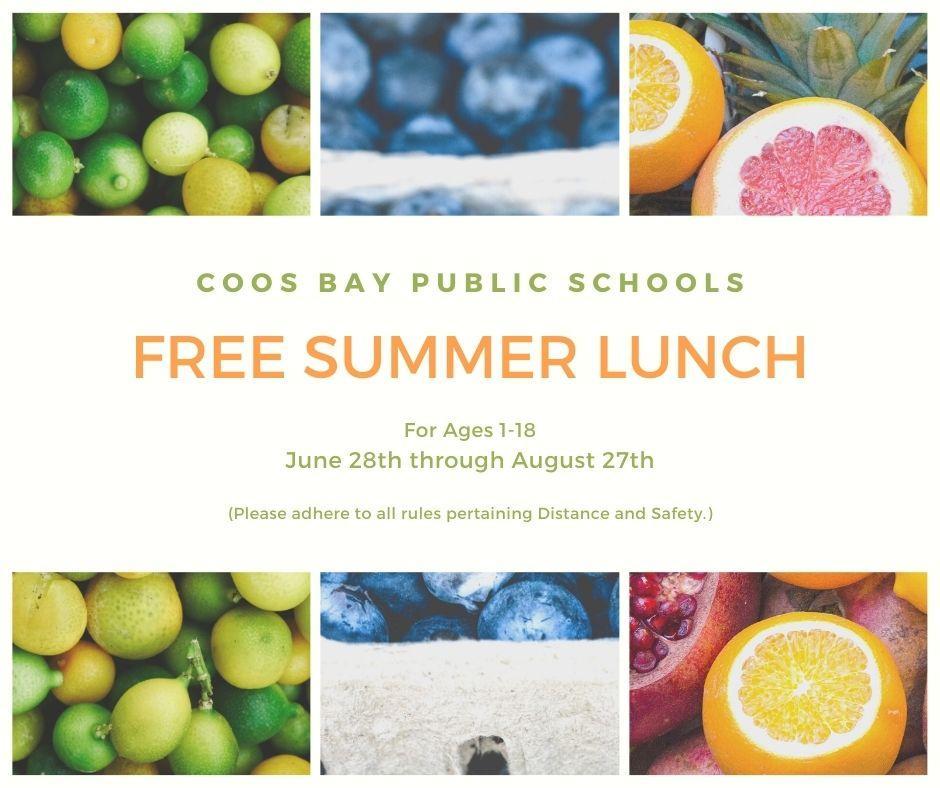 Summer 2021 - Coos Bay Public Schools will have free summer lunch which includes breakfast and lunch.