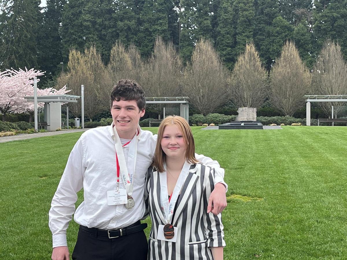 Elizabeth Delgado and Ava Thomas won the state title in Audio & Radio Production and will represent Marshfield in the national tournament.