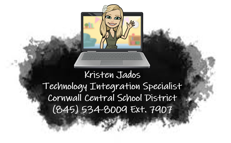 My name is Kristen Jados, and I am the Technology Integration Specialist for Cornwall Elementary School. I collaborate with teachers to help enrich their lessons with technology. Together we provide students with the tools needed to be 21st century learners in an ever-changing technology-based society. These skills range from logging onto our devices to becoming Google pros and even coding/robotics.