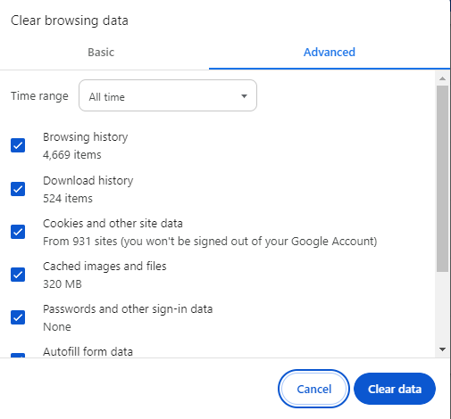 - Click Clear data.