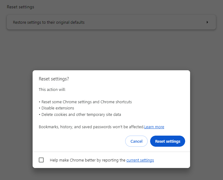 Next, reset your browser settings: