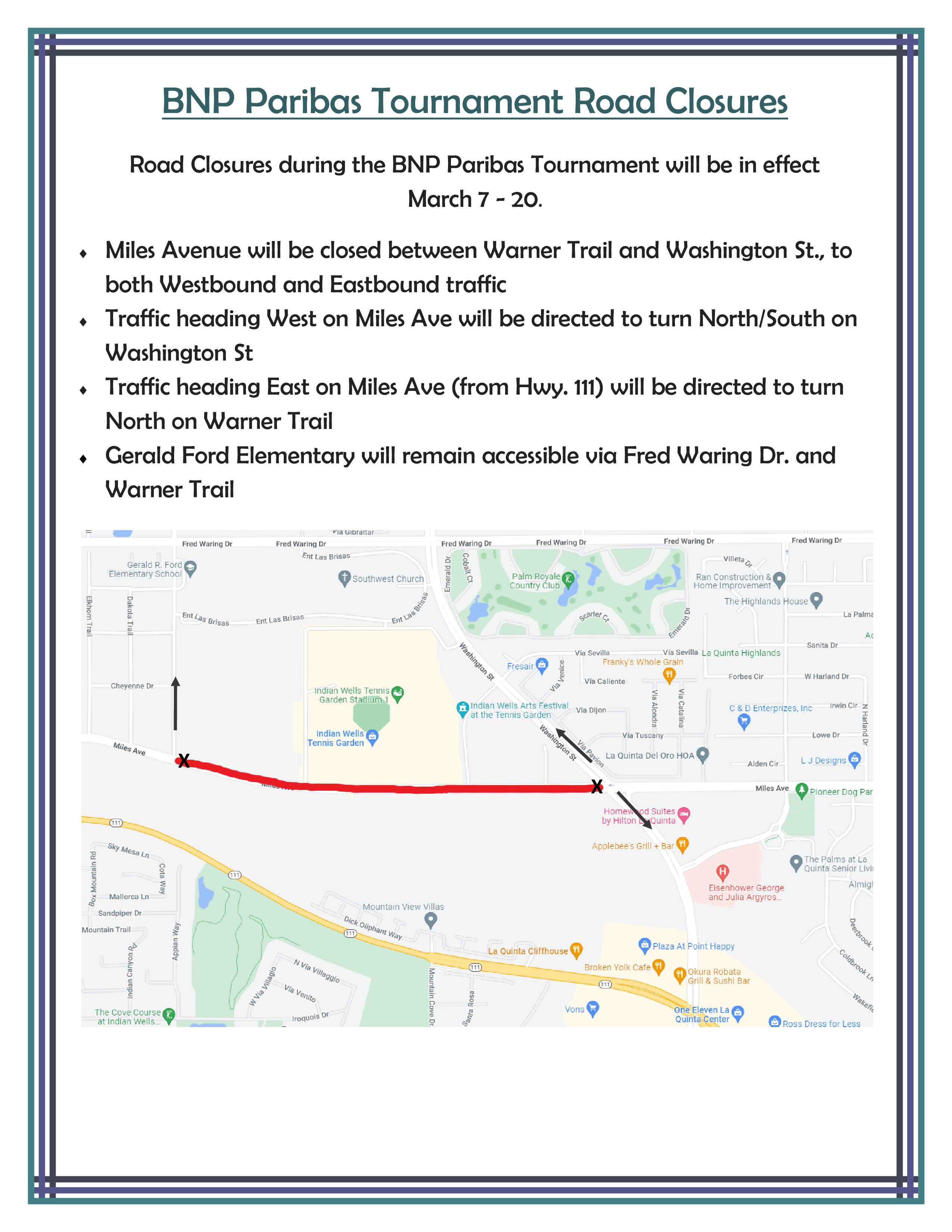 Please see the attached traffic advisory for the BNP Paribas Open.