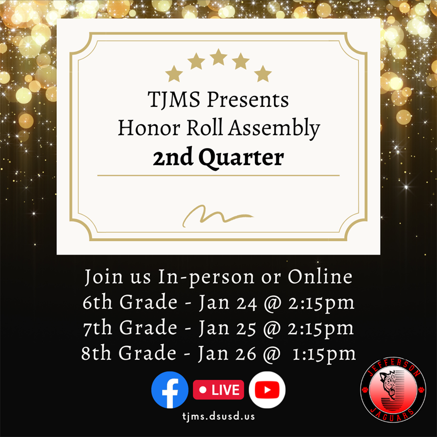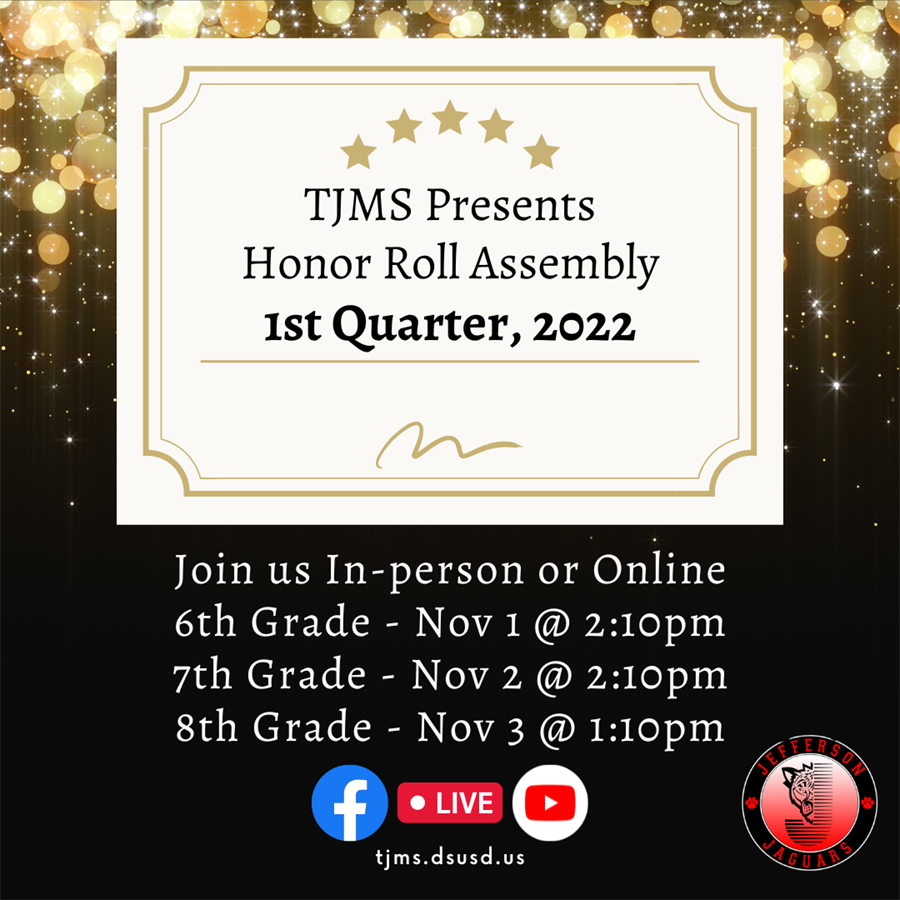 Join us in person or online for Quarter 1 Honor Roll Assemblies! Please see our schedule for more details.