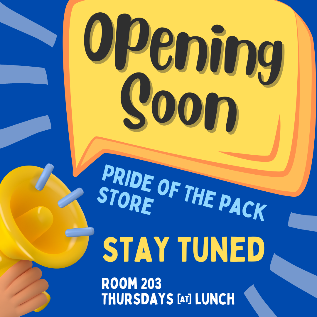 Pride of the Pack Store will be opening soon on Thursdays during Lunch. Stay tuned for more info coming soon!