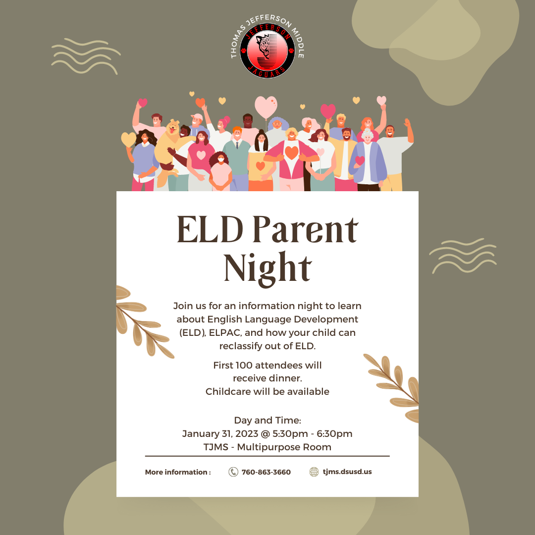 Join us on January 31st at 5:30-6:30 for our ELD Parent night!