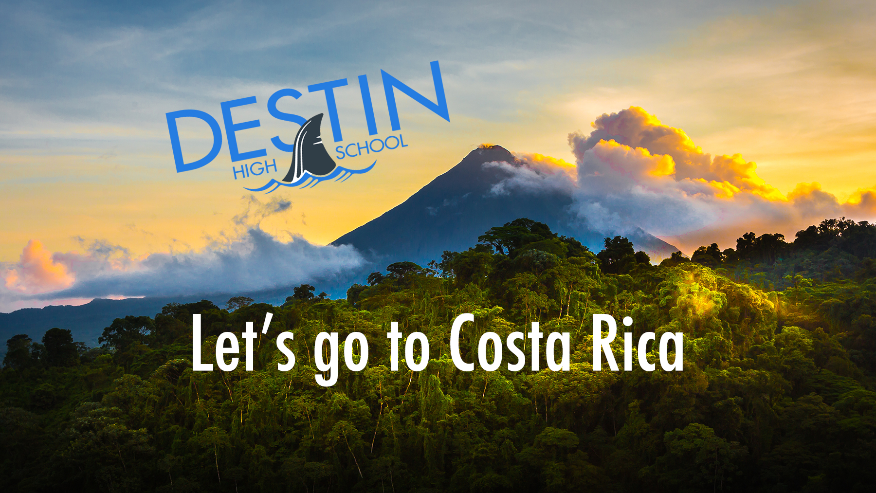 We're excited to tell you more about the 2025 trip to Costa Rica we're planning with EF Tours, our educational travel partner. Please be sure to register for this info session to be considered for our upcoming travel opportunity. Sign-up: https://bit.ly/42uFFb1 https://drive.google.com/file/d/1_LHUEmOyXsQcaVLKYoZ6r3l9wqCELMJr/view?usp=sharing Room D-108 - Destin High School