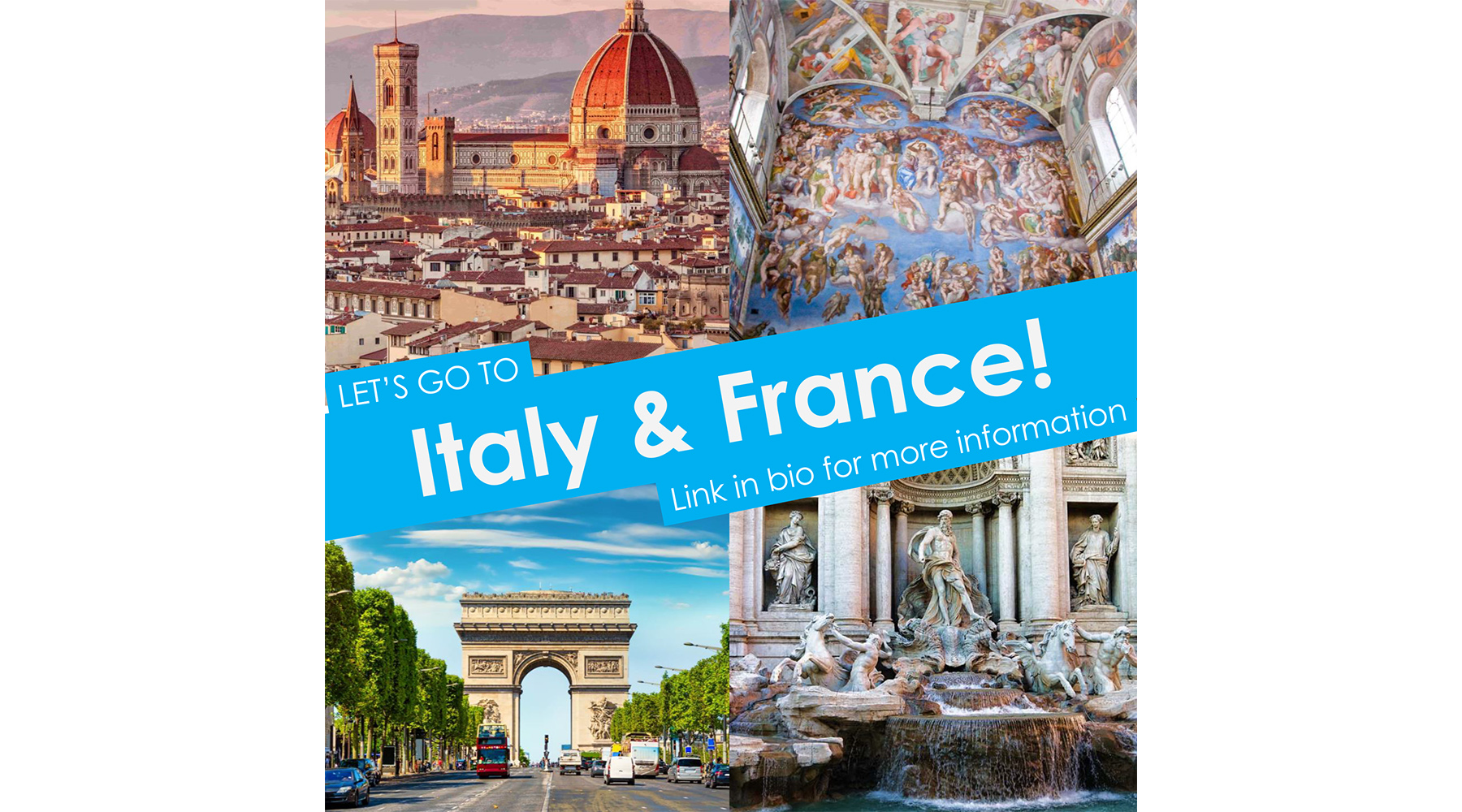 Big news, Destin HS students! You can travel on an Artist Tour to Italy & France in Summer 2025! See Mrs. Sharp in D105 to register for an information meeting on Thursday, September 12th at 5:30pm.