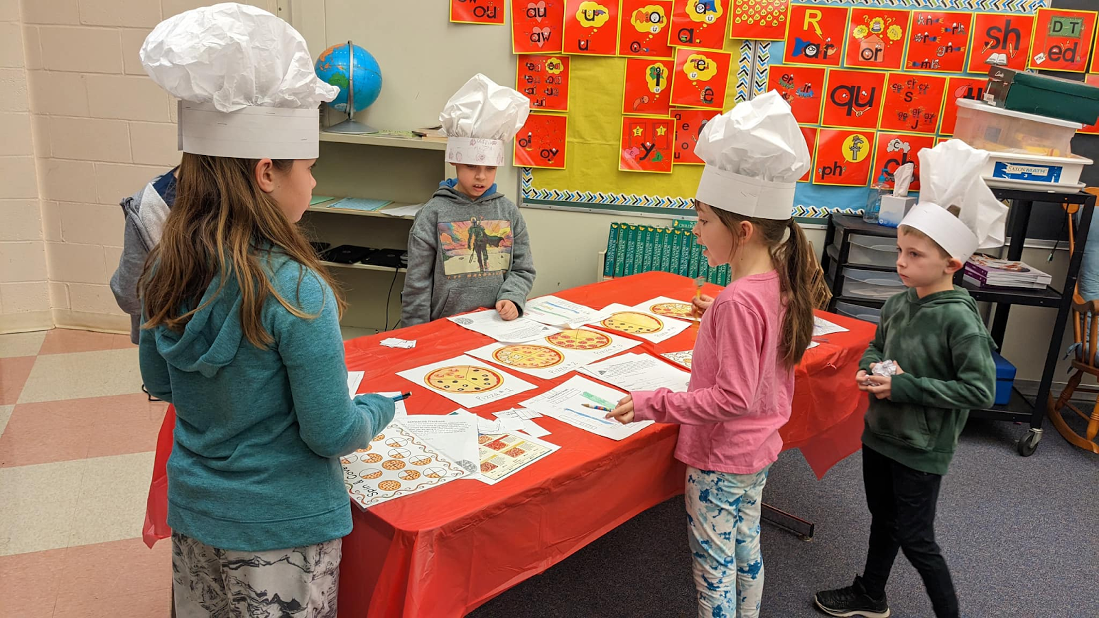 3rd grade chefs got to put their fraction and graphing knowledge to work! They compared fractions of pizza toppings, made a graph of the 3rd grade students' favorite pizza toppings, played fraction ball, and of course got to build their own pizzas!