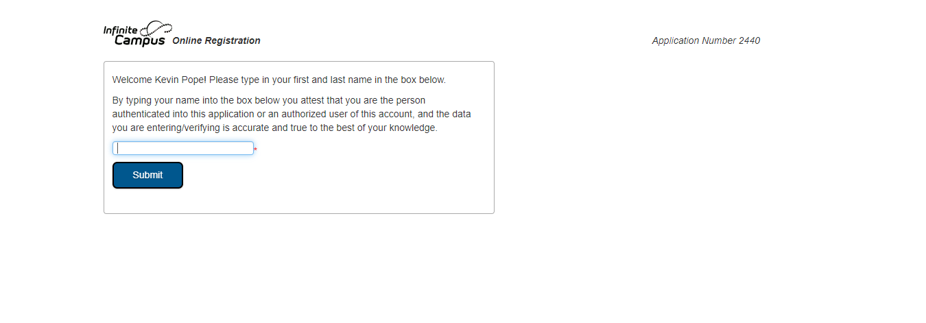 After clicking the link you will be directed to this page to type in your name to verify your identity again.