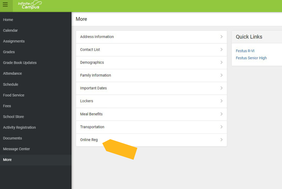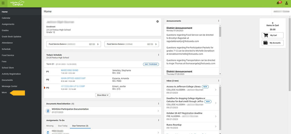 Once you log in to your parent portal account, click on "More" on the left side of the screen.